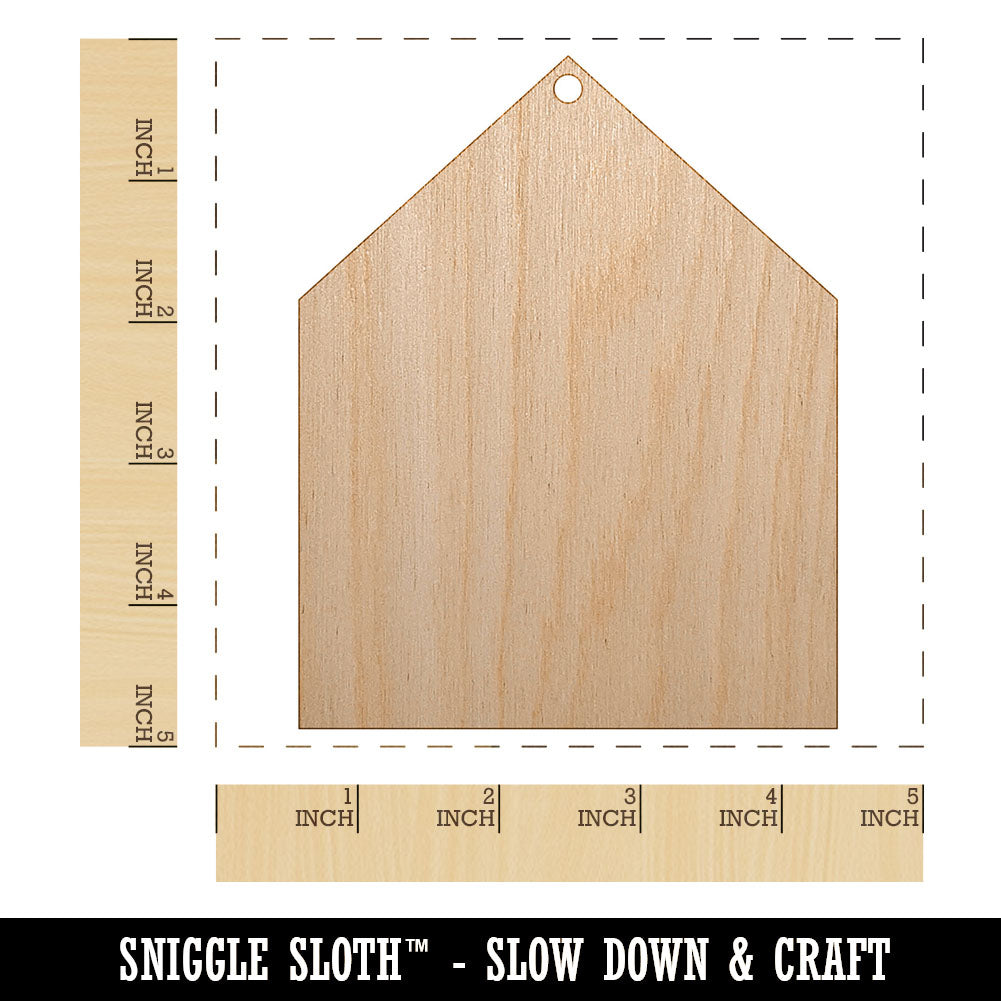 Simple House Solid Unfinished Craft Wood Holiday Christmas Tree DIY Pre-Drilled Ornament