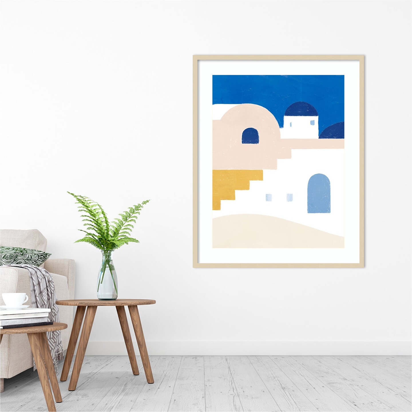 Simple Santorini I by Victoria Barnes Wood Framed Wall Art Print 33 in. W x 41 in. H