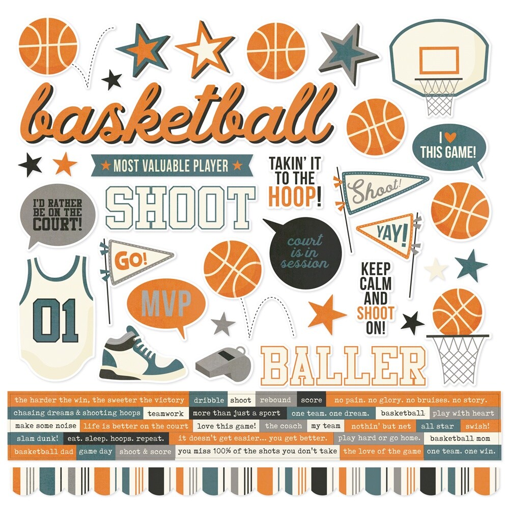 Simple Stories Cardstock Stickers 12"X12"-Basketball
