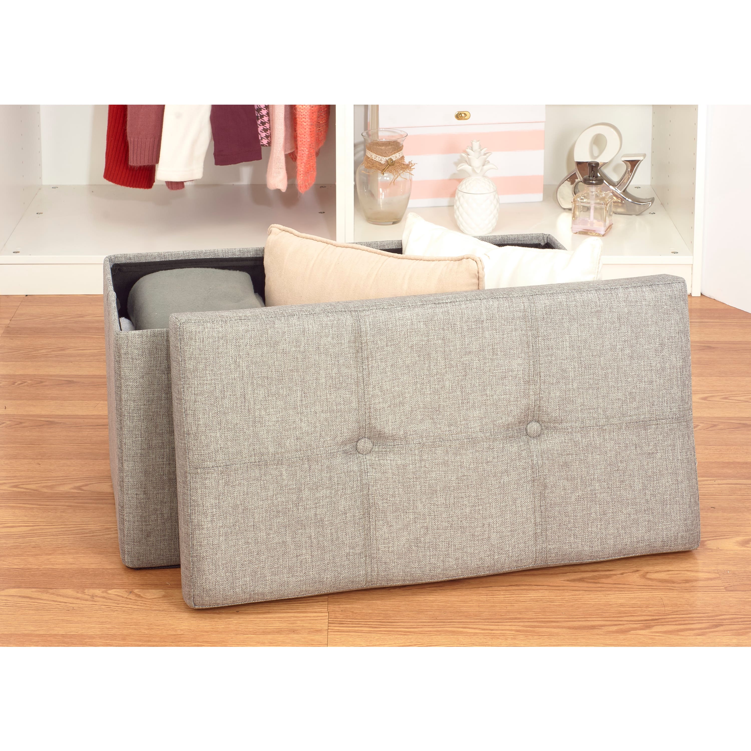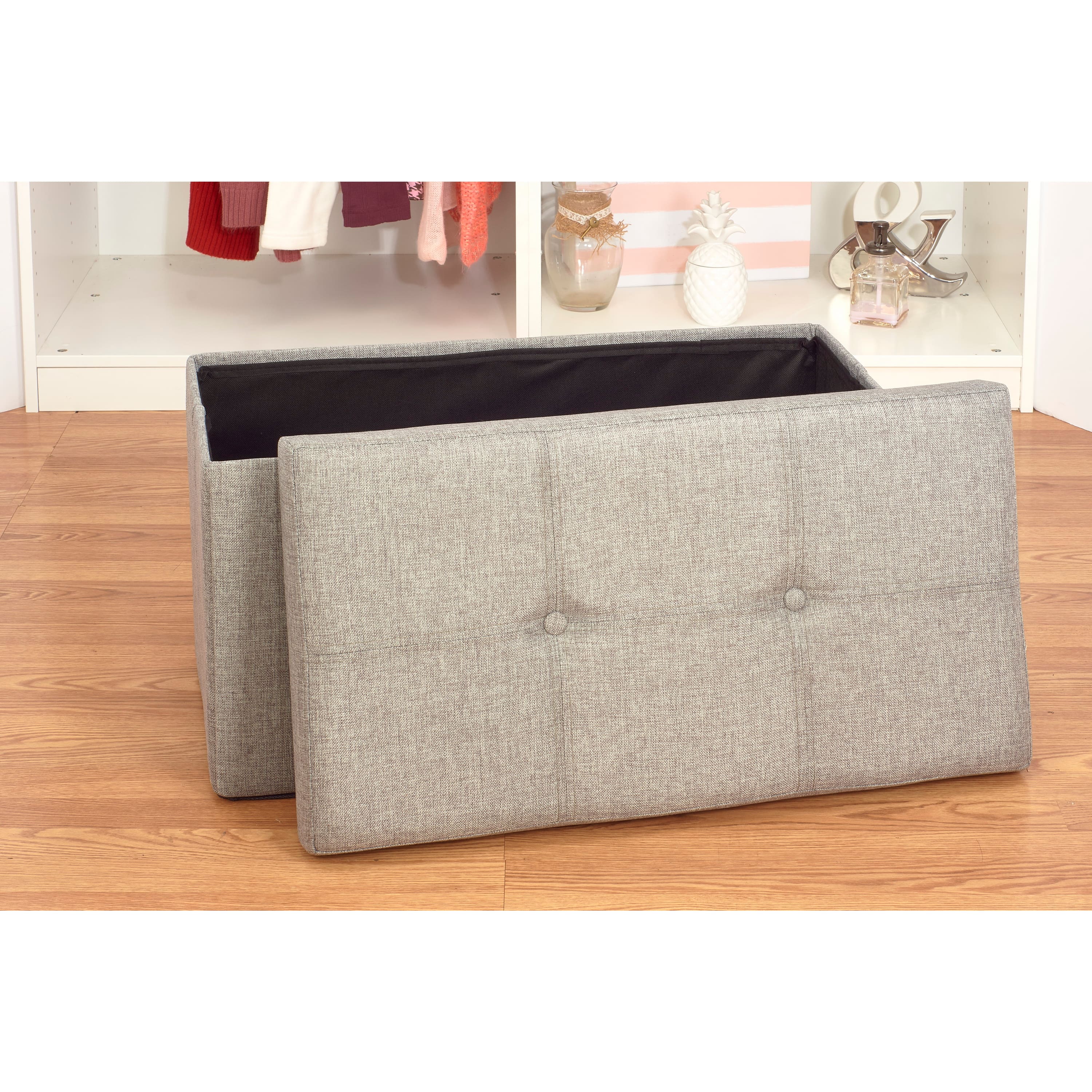 Simplify 30" Faux Linen Double Folding Storage Ottoman