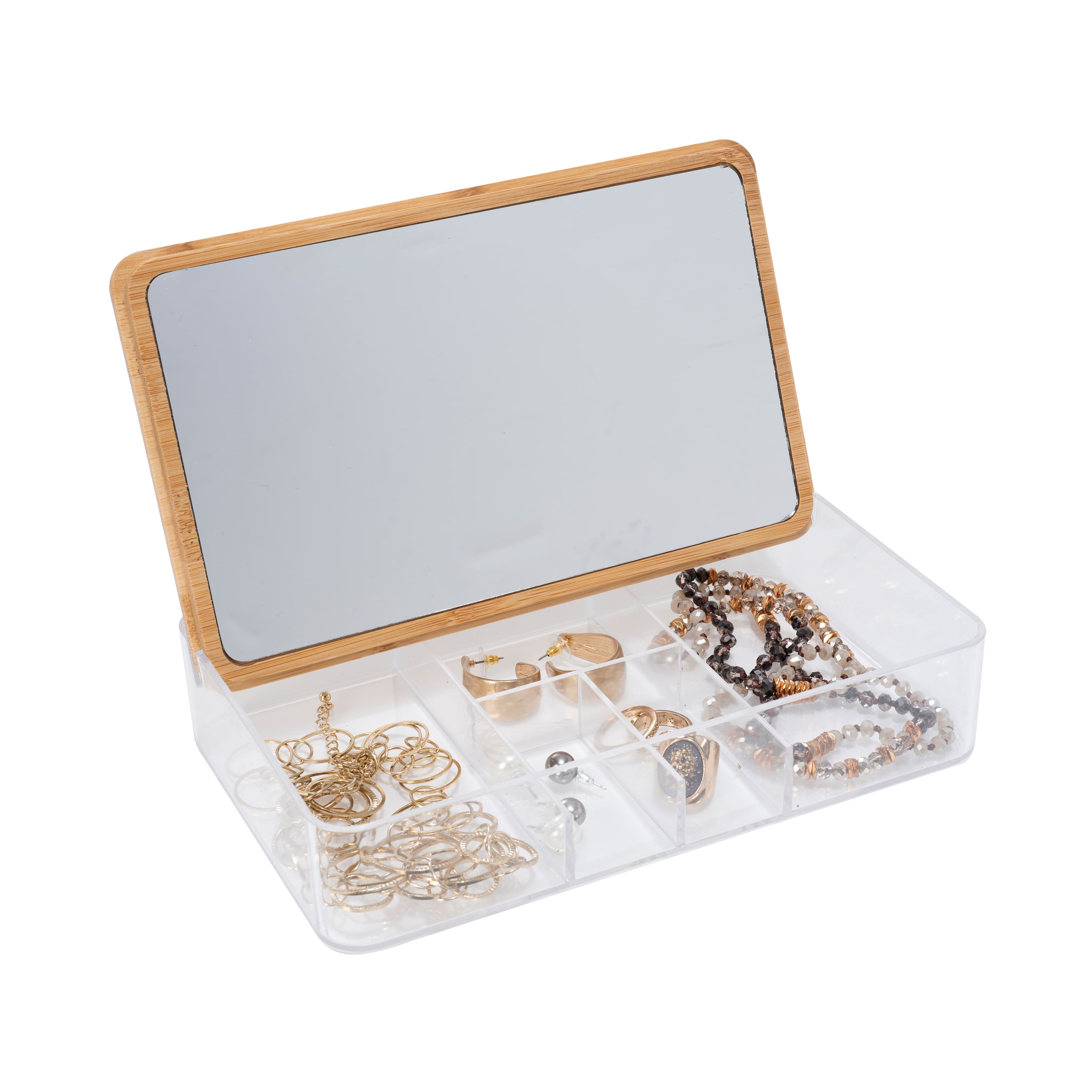 Simplify Bamboo Lid & Mirror Clear 5 Compartment Organizer
