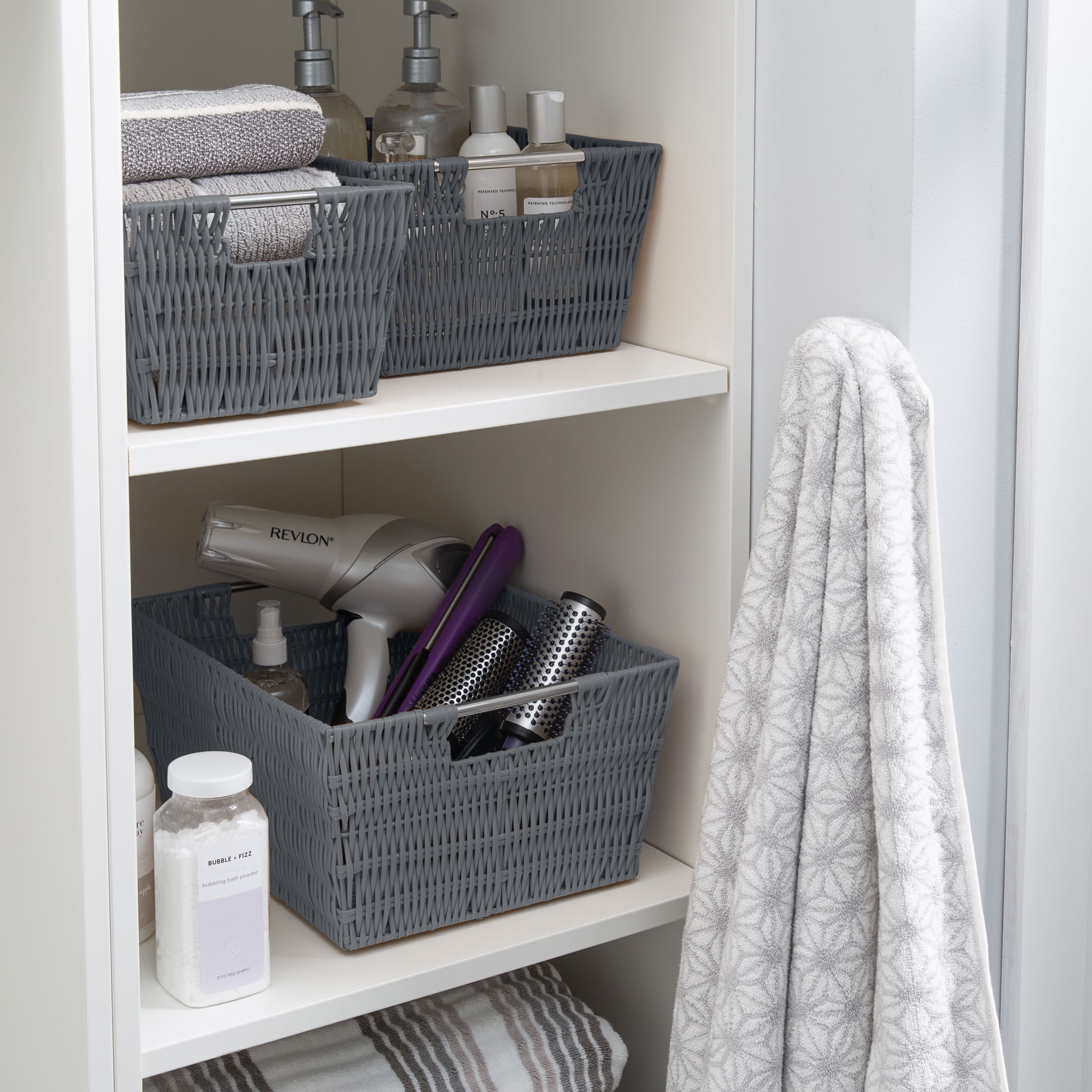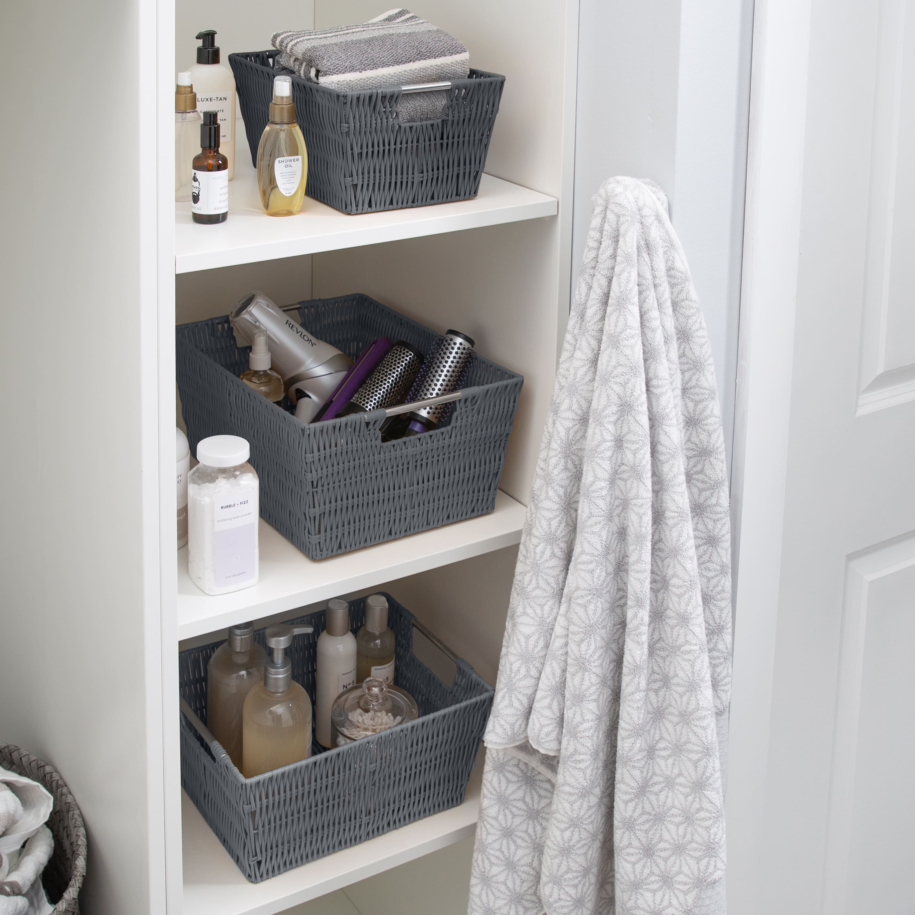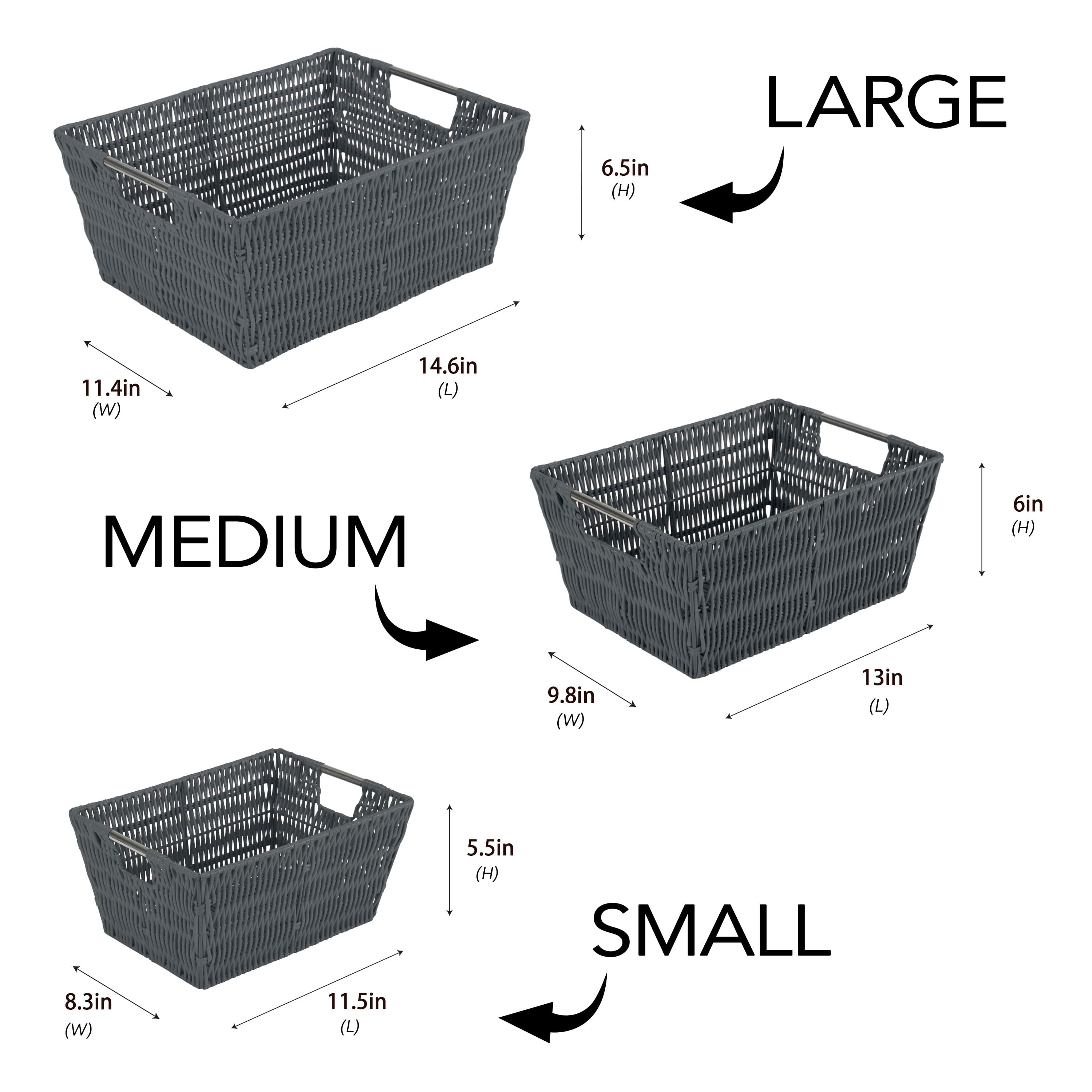 Simplify Charcoal Rattan Tote Basket Set, 3ct.