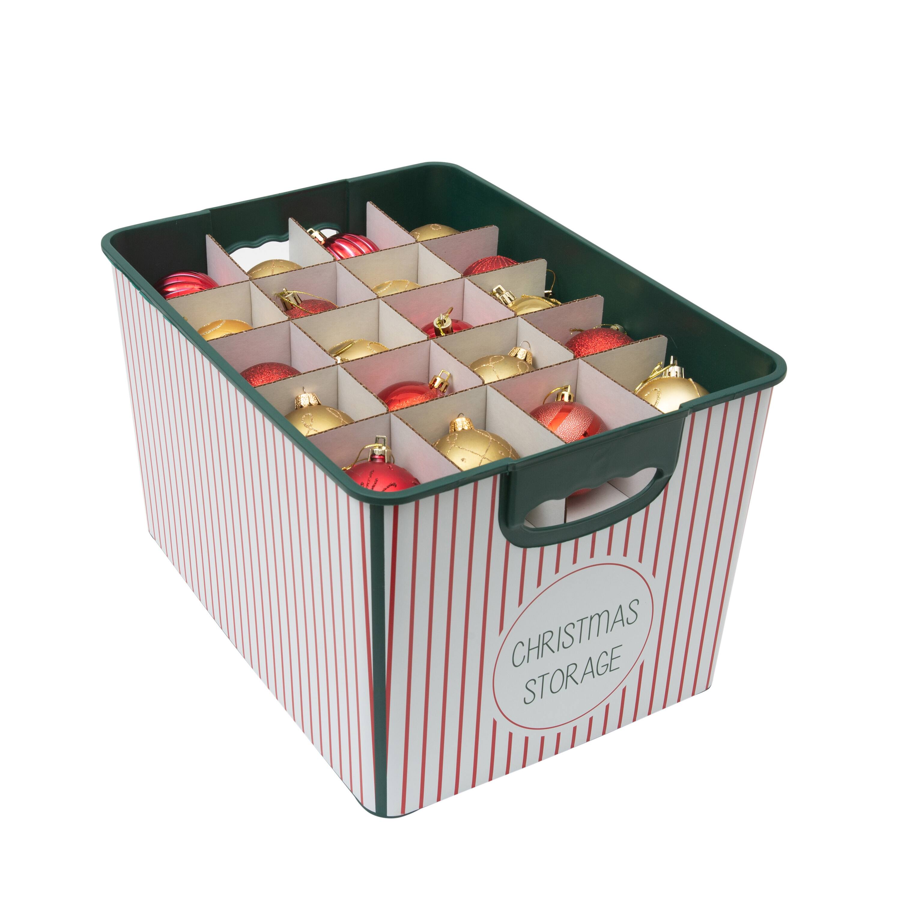 Simplify Christmas Stripe Design Green Ornament Storage Tote Bin