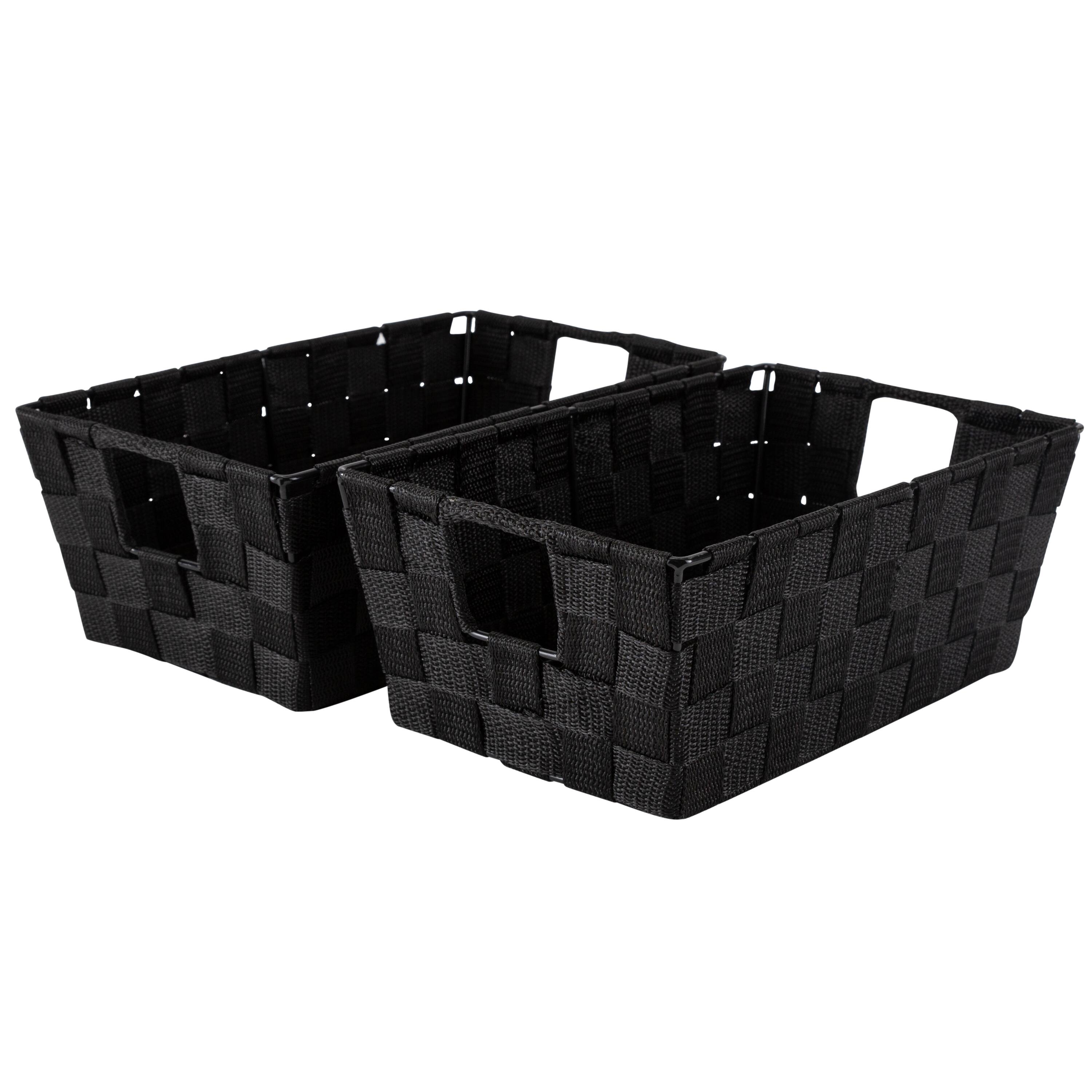 Simplify Small Black Woven Storage Shelf Baskets, 2ct.
