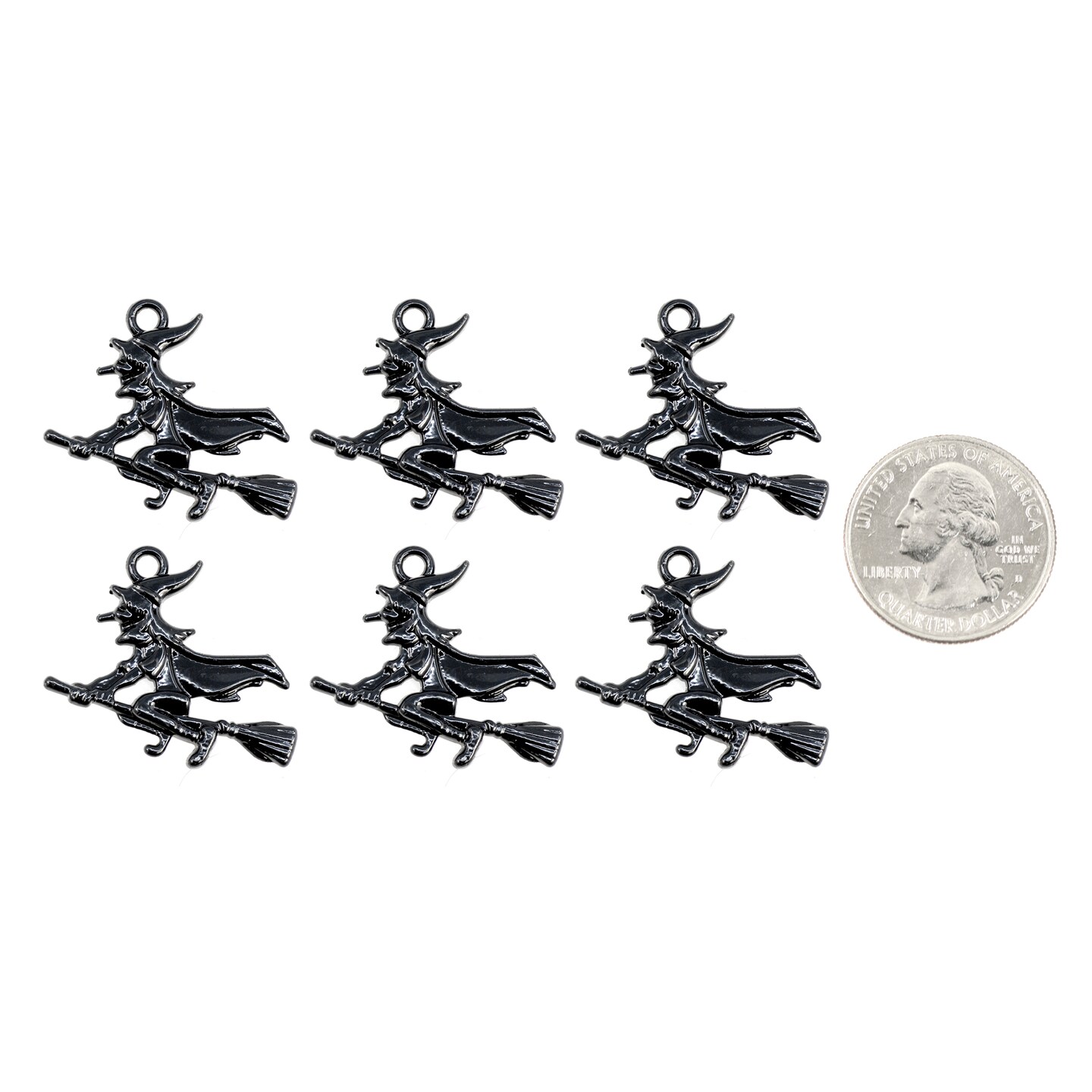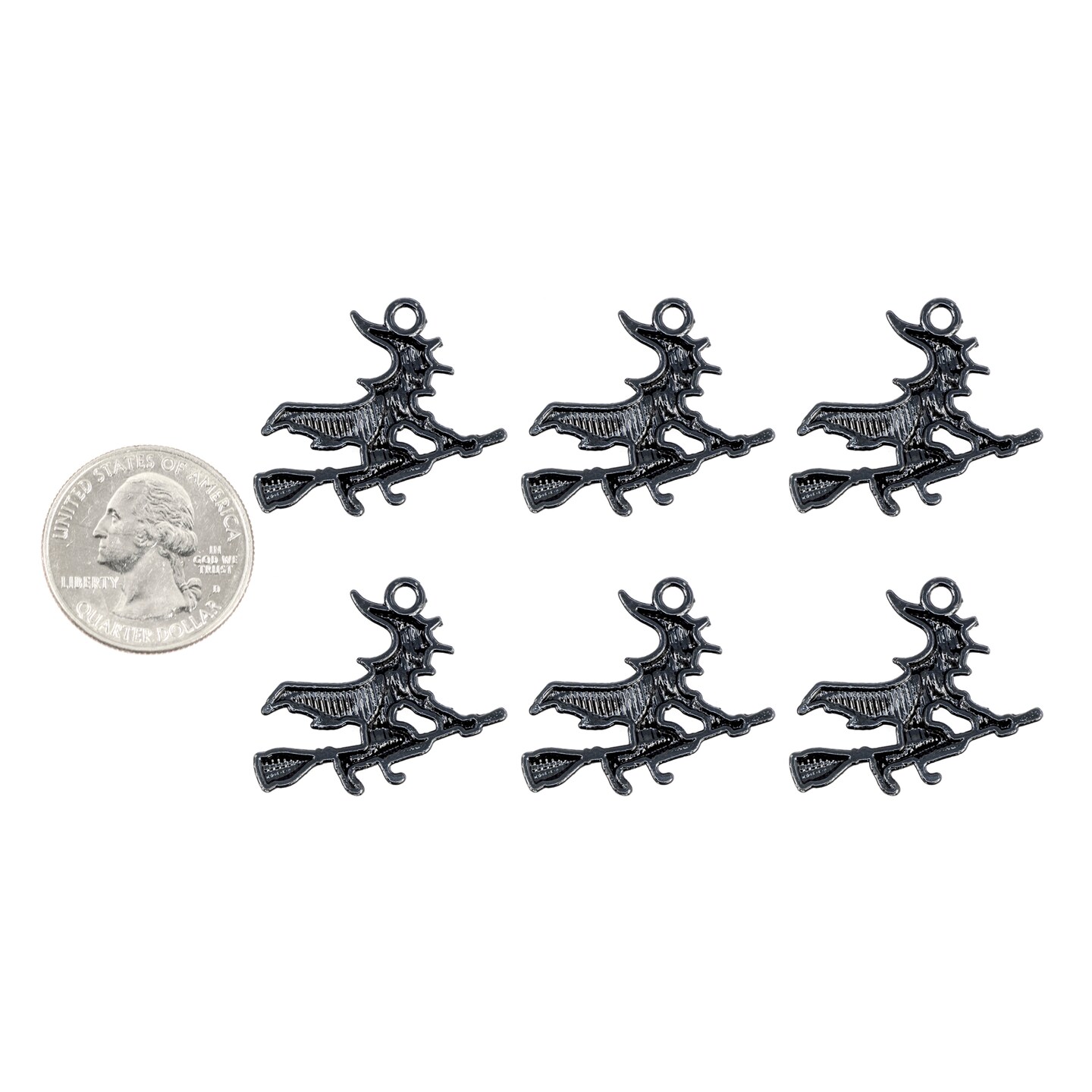 Six Black Witch on Broomstick Charms ZBL-C02