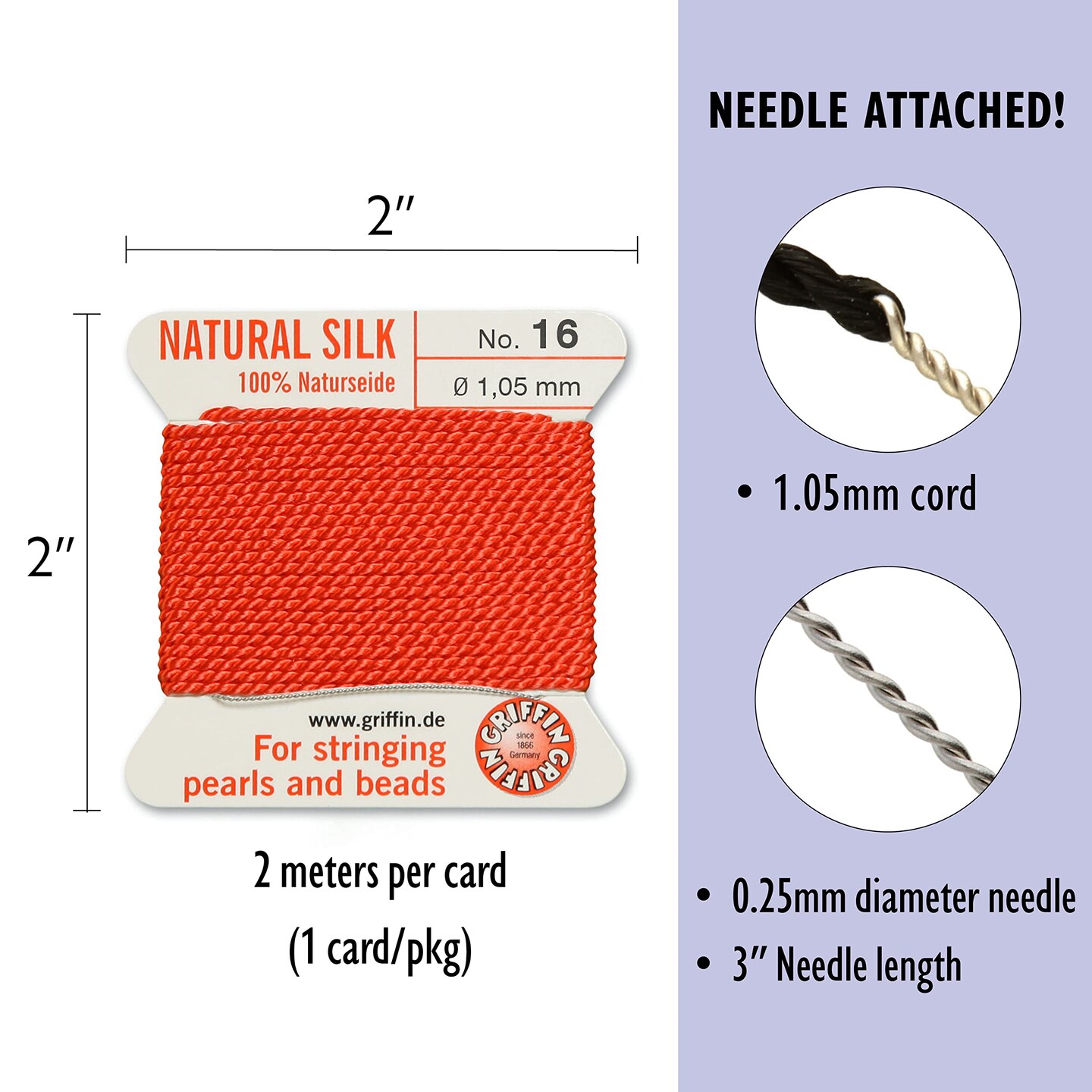 Size 16 Griffin Bead Cord 100% Natural Silk