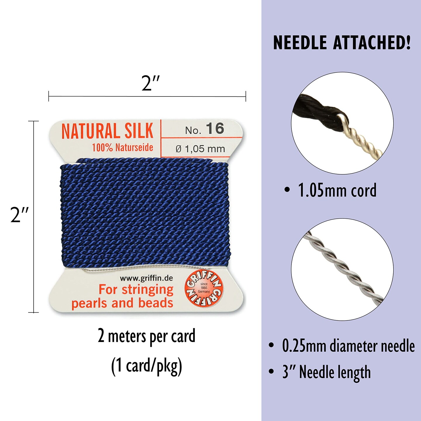 Size 16 Griffin Bead Cord 100% Natural Silk
