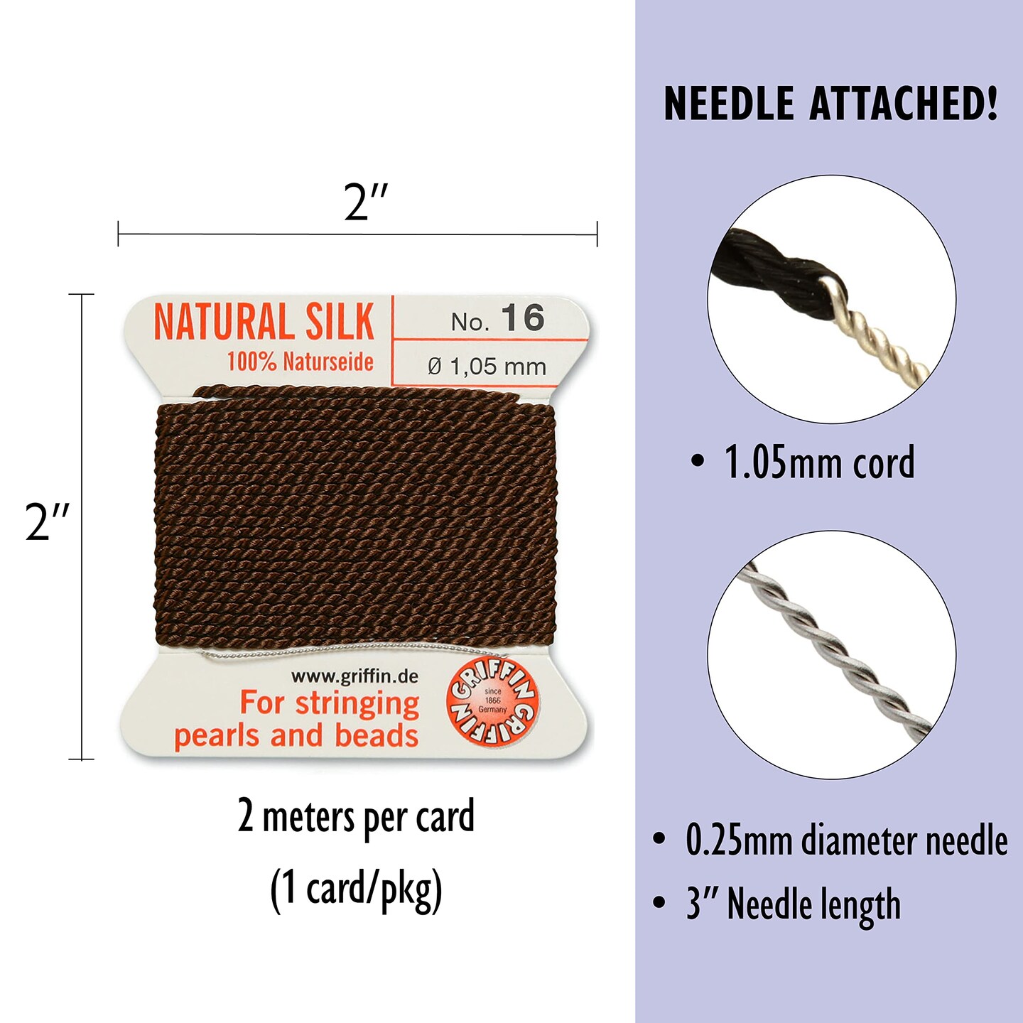 Size 16 Griffin Bead Cord 100% Natural Silk
