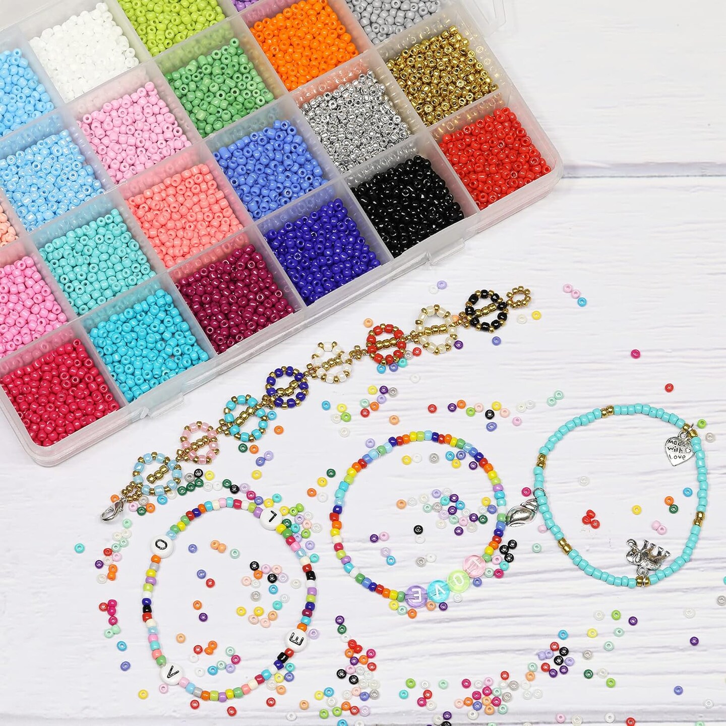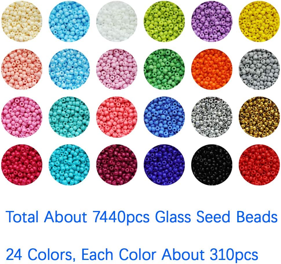 Size 8/0 Crafts Glass Seed Beads 3mm Pony Beads with Organizer Box ,(24 Assorted Multicolor Set, Total About 7440pcs)