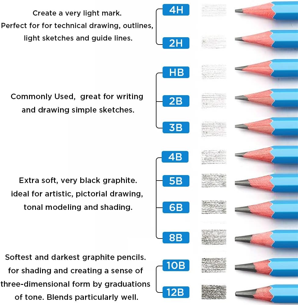 Sketch Pencils for Drawing 12B, 12pcs Softest and Darkest Professional Graphite Pencils, Art Drawing Pencils for Shading for Artists & Beginners