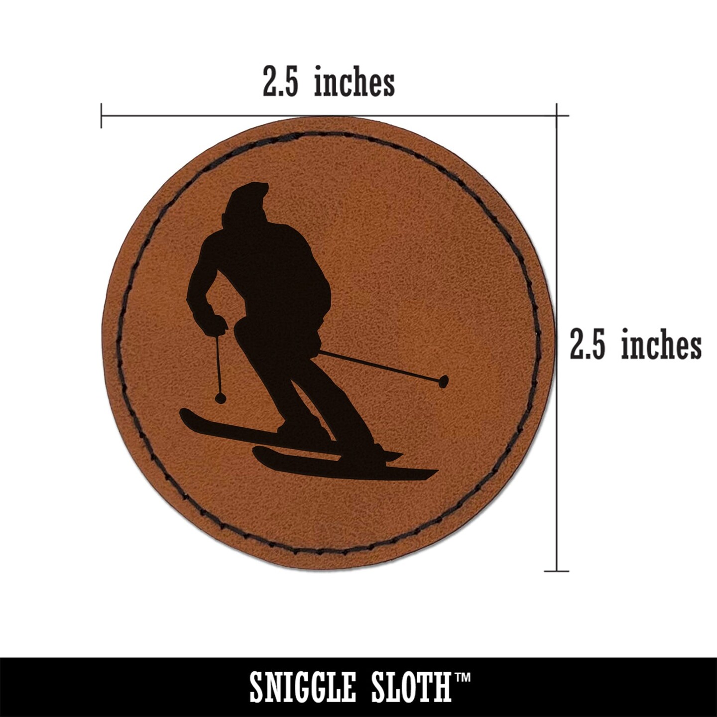 Skiing Skier Solid Round Iron-On Engraved Faux Leather Patch Applique - 2.5"