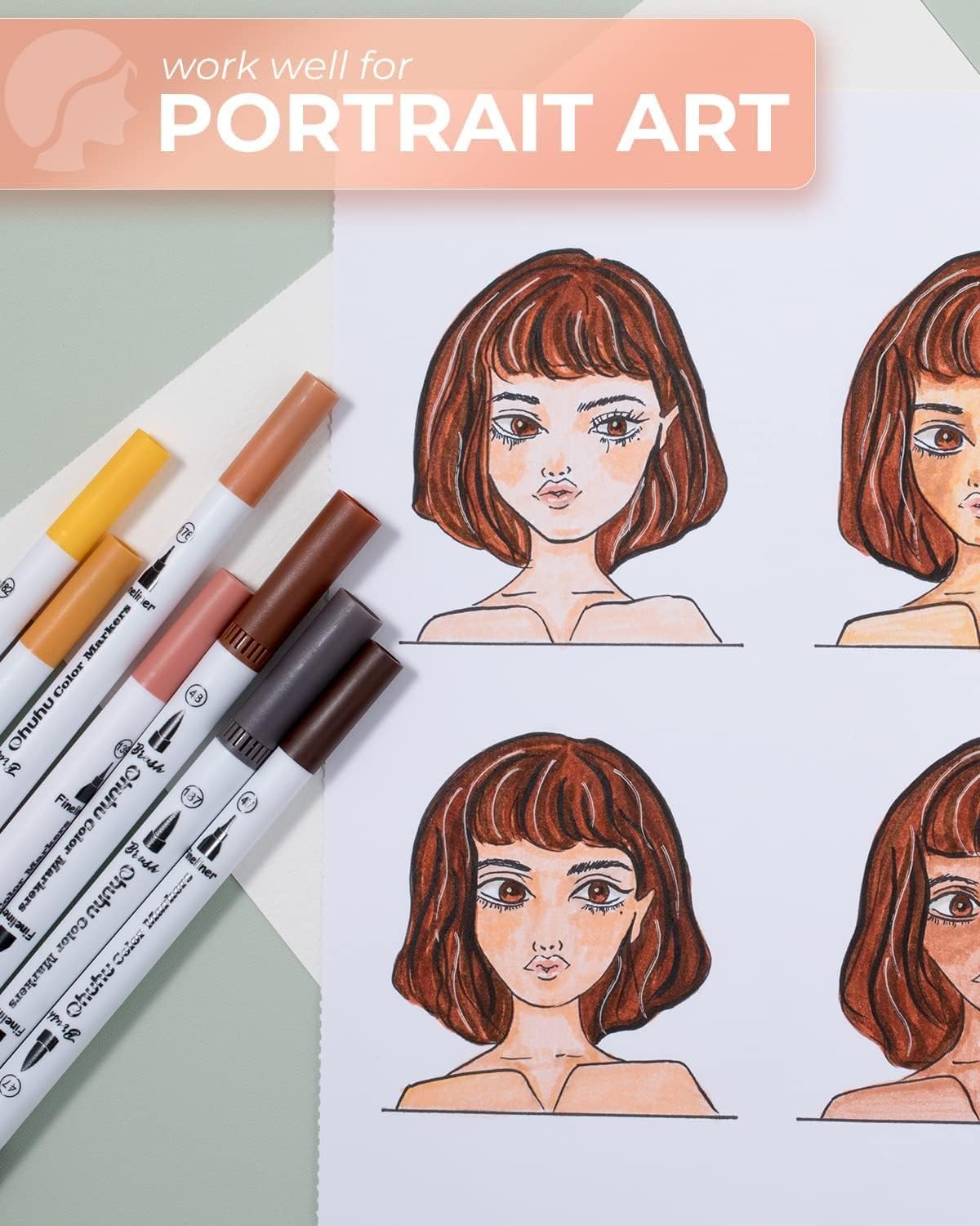 Skin Tone Markers 36 Colors Dual Tip Brush and Fineliner Markers
