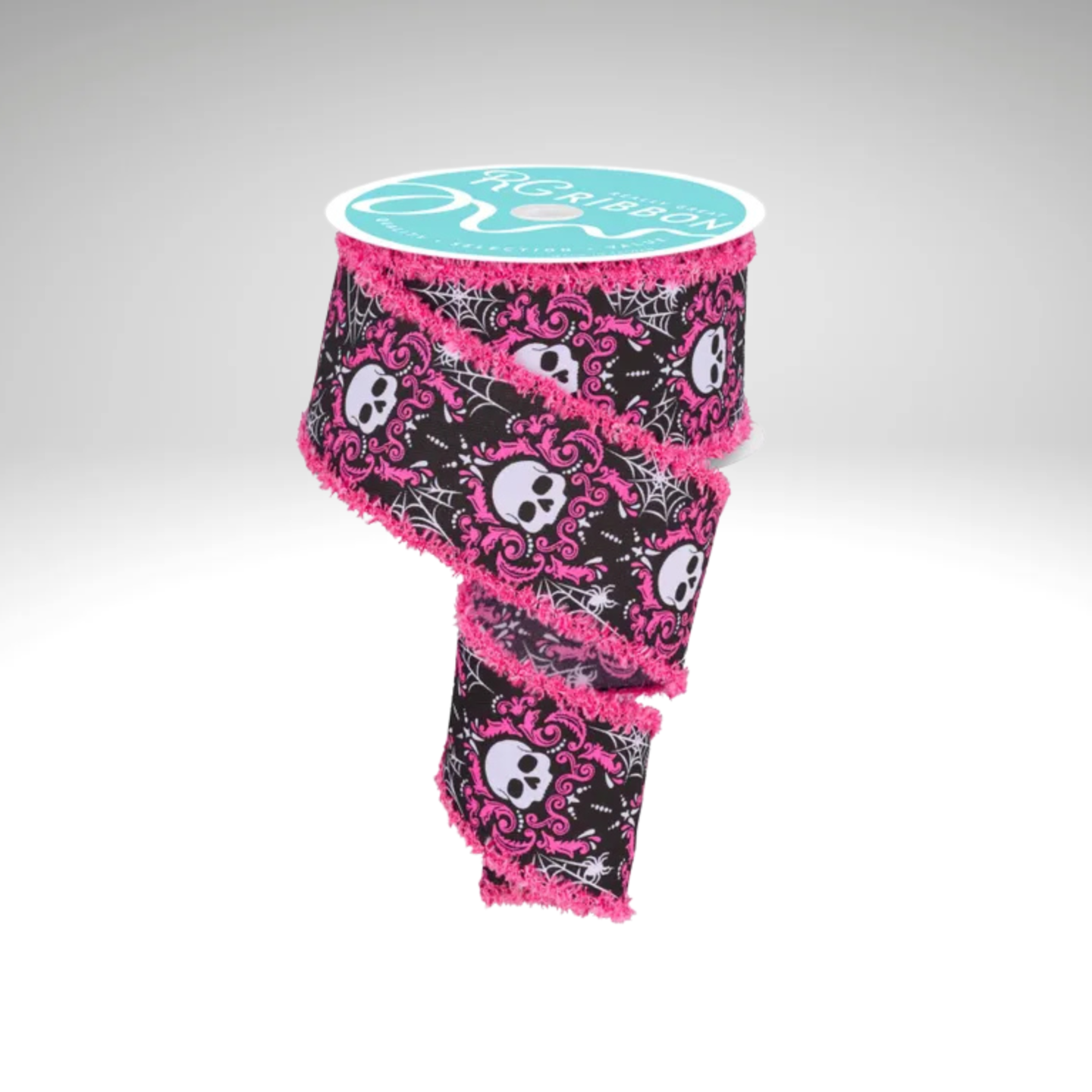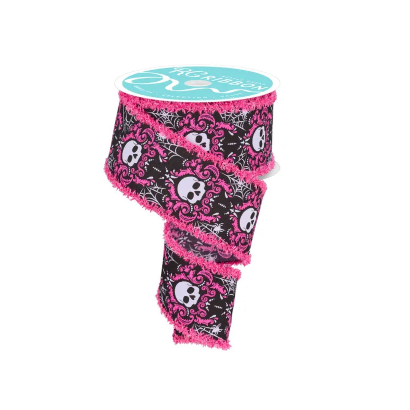 Skull Damask Ribbon 2.5"x10yd – Black Pink Wired Halloween Ribbon-RGC8245J6