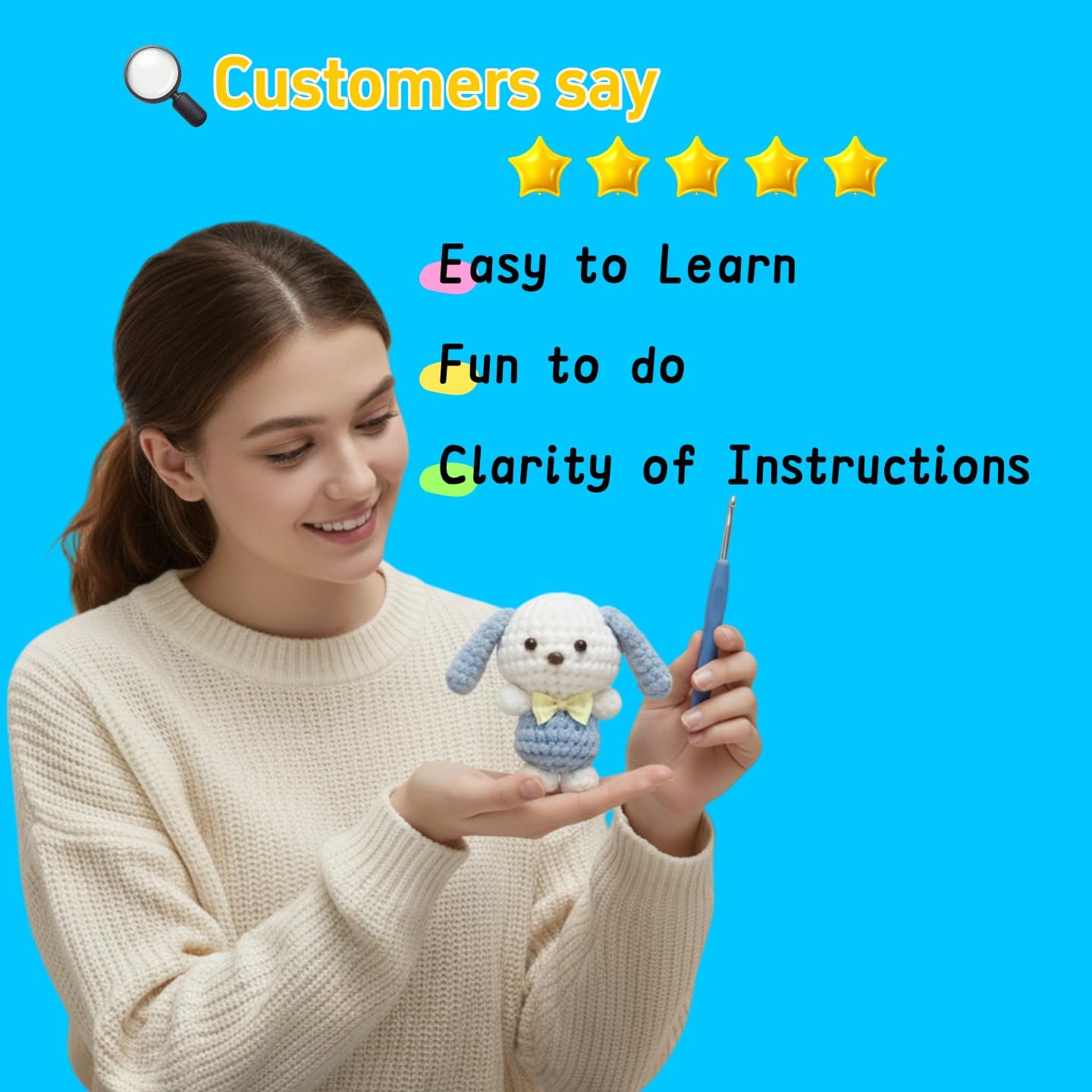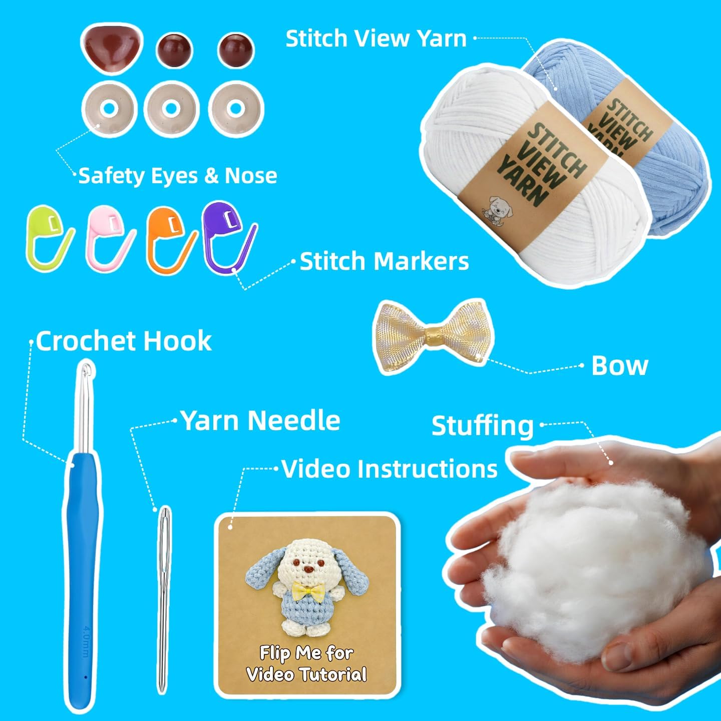 Sky Pup Crochet Kit for Complete Beginners – DIY Adorable Puppy with Bowtie, Step-by-Step Video Tutorials, All-in-One Craft Kit for Teens & Adults, Creative Gift for Christmas