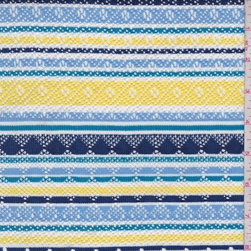 Sky/Navy/Yellow Stripe Pointelle Knit Fabric By the Yard