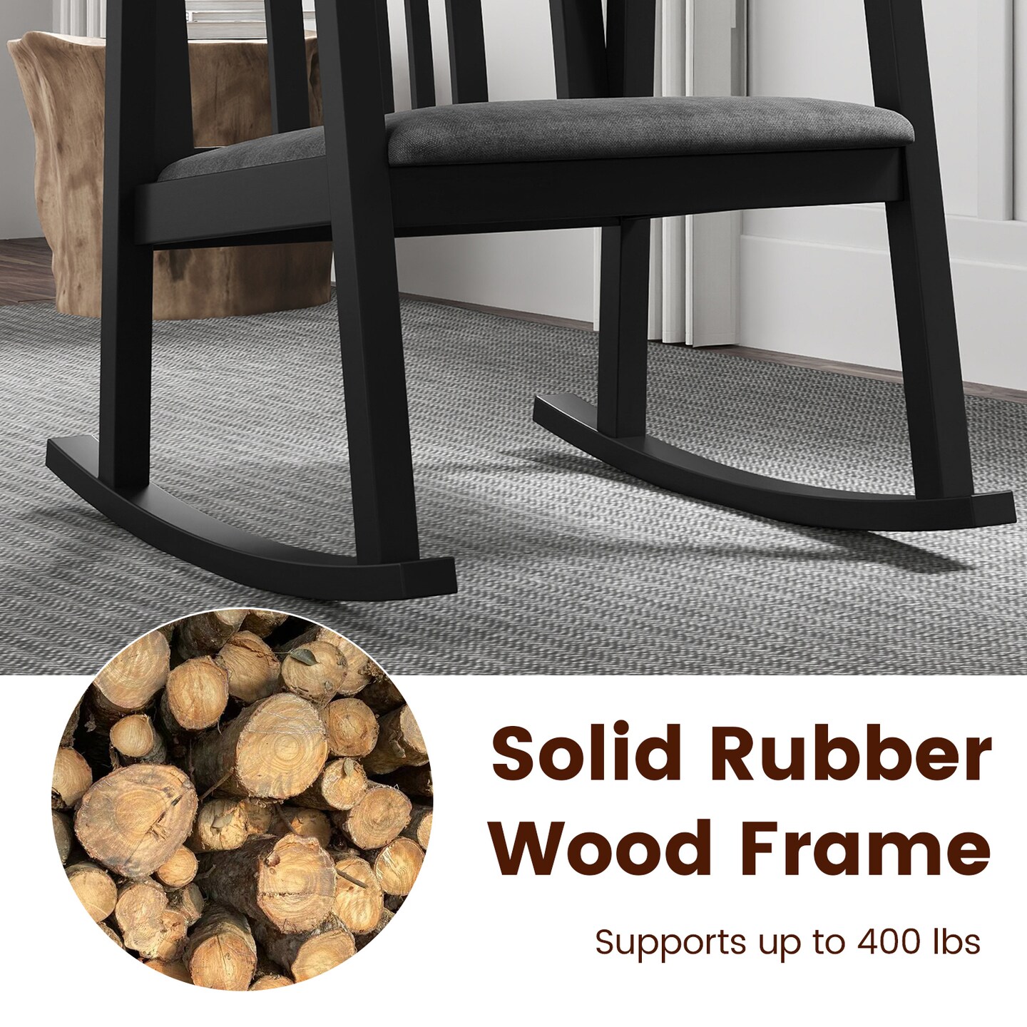 Slatted Back Rocking Chair with Comfortable Curved Armrests