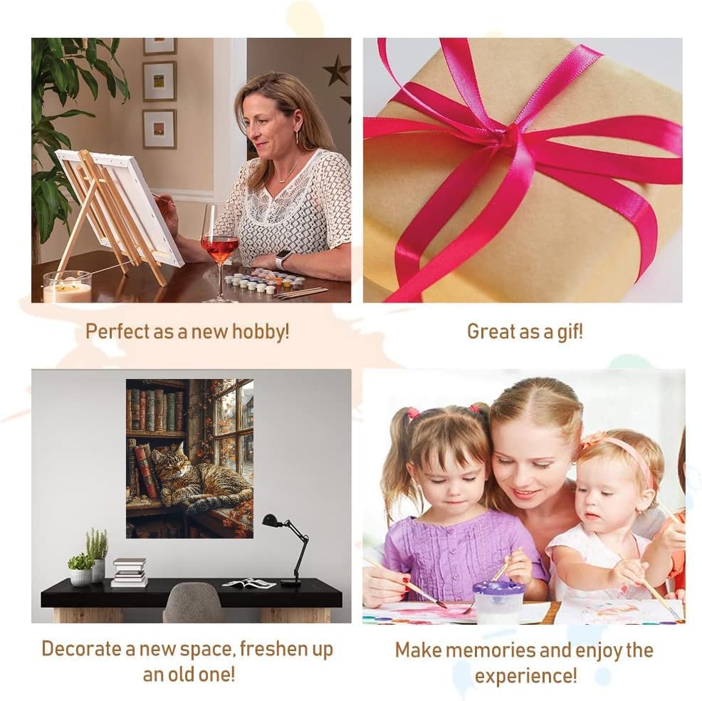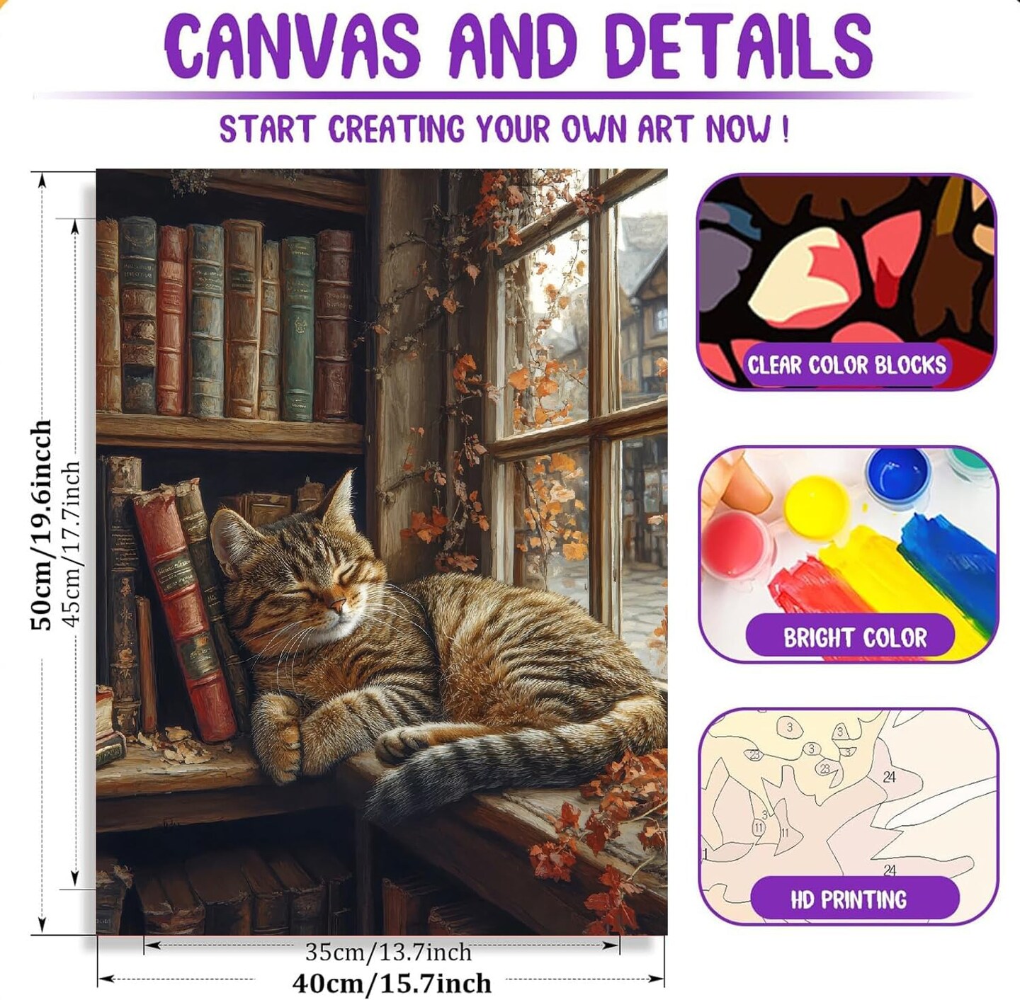 Sleeping Cat Paint by Numbers Kit for Adults – Beginner-Friendly DIY Acrylic Canvas Painting, Easy Paint by Numbers for Home Wall Décor or Bookshelf Display (16" W x 20" L)