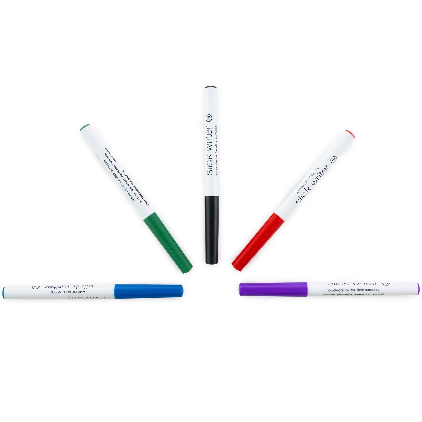 Slick Writer Marker Pens 5/Pkg-Fine Point-Black/Blue/Red/Green/Purple