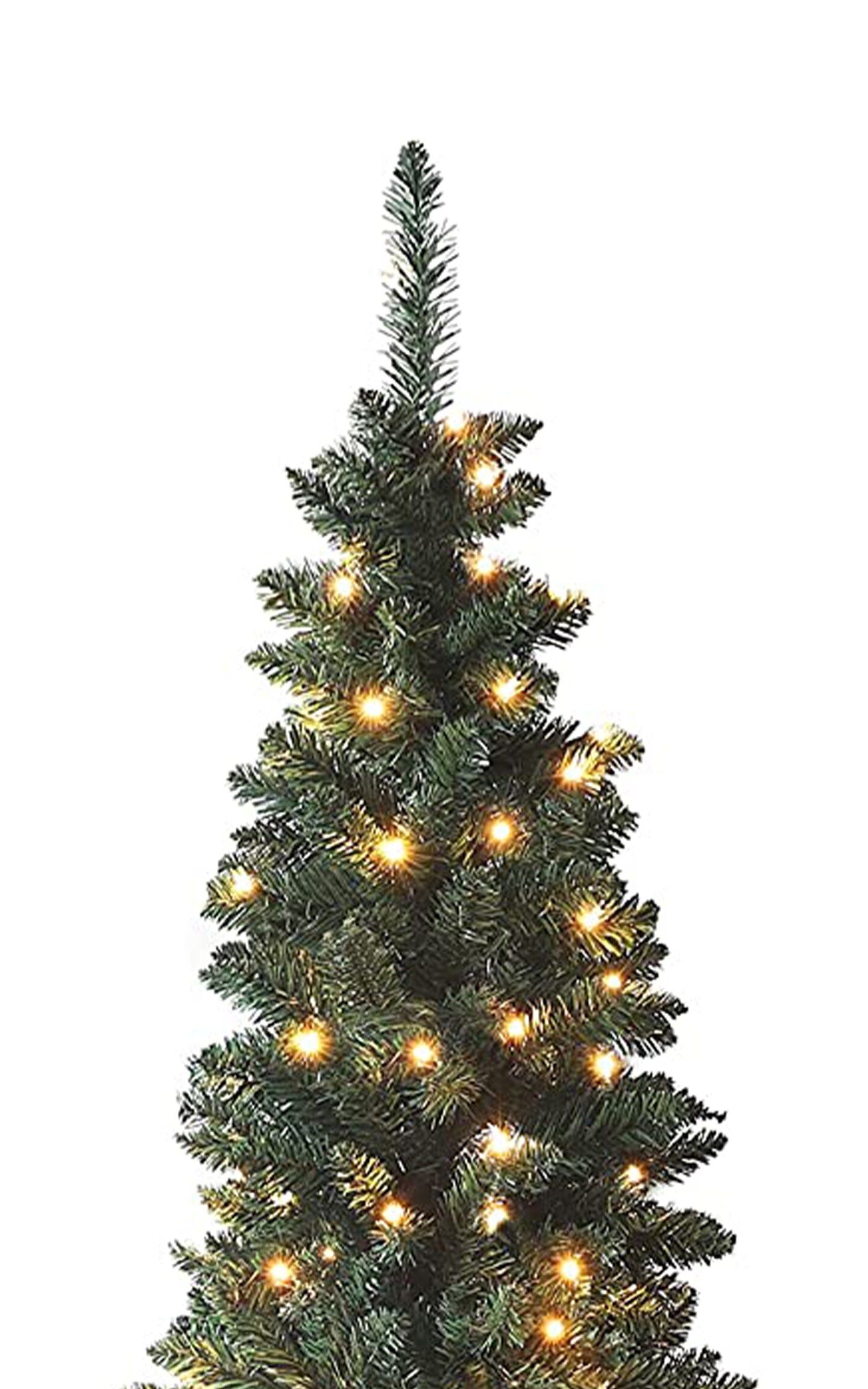 Slim Pencil Green Christmas Tree - Artificial Linden Spruce with Premium PVC Needles - Sturdy Metal Stand Included - Ideal for Compact Spaces - Effortless Assembly and Elegant Holiday Décor