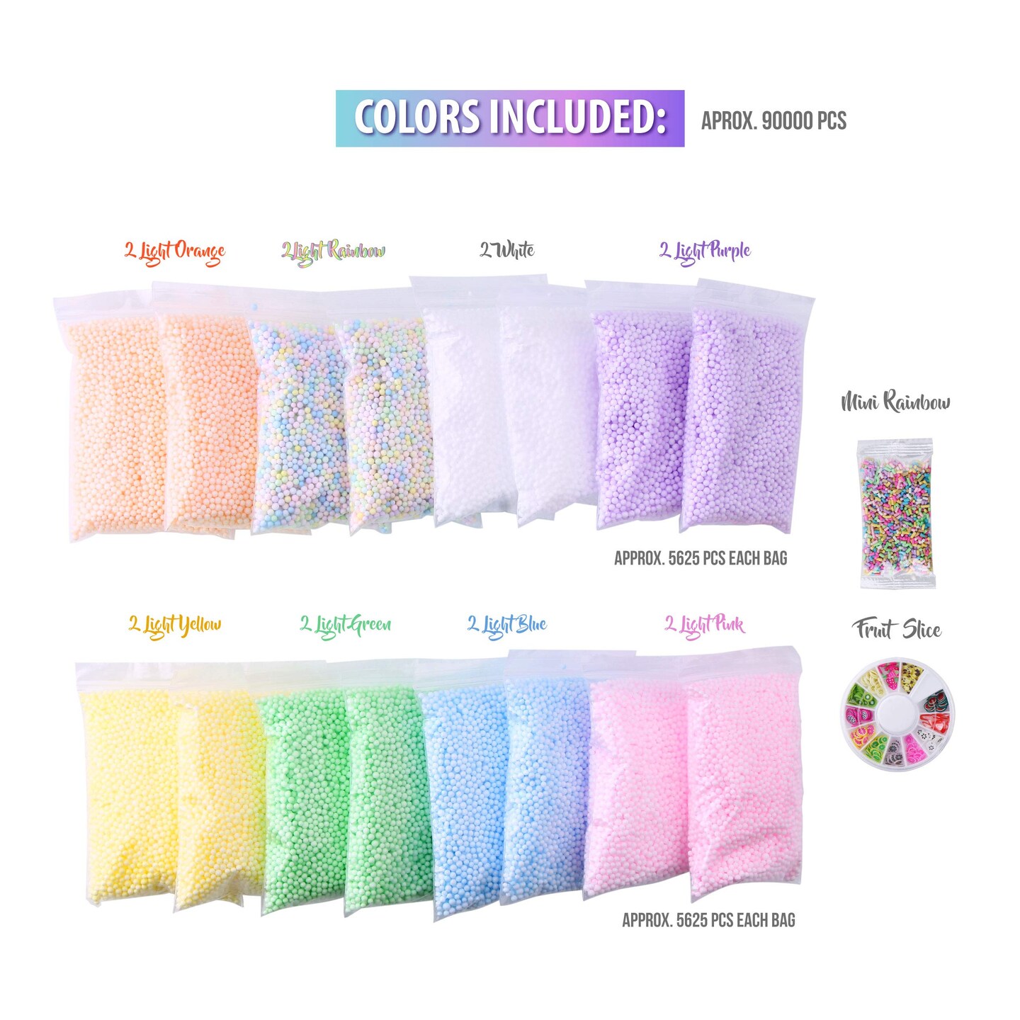 Slime Foam Beads Floam Balls – 18 Pack Pastel Microfoam Beads Kit 0.1-0.14 inch (90,000 Pcs) Micro Colors Rainbow Fruit Beads Craft Add ins Homemade DIY Kids Ingredients Flote Microbeads Supplies