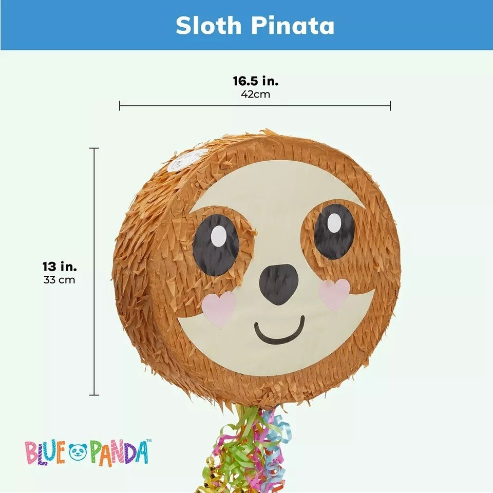 Sloth Pull String Pinata for Kids Birthday Party Supplies (16.5 x 13 x 3 In)