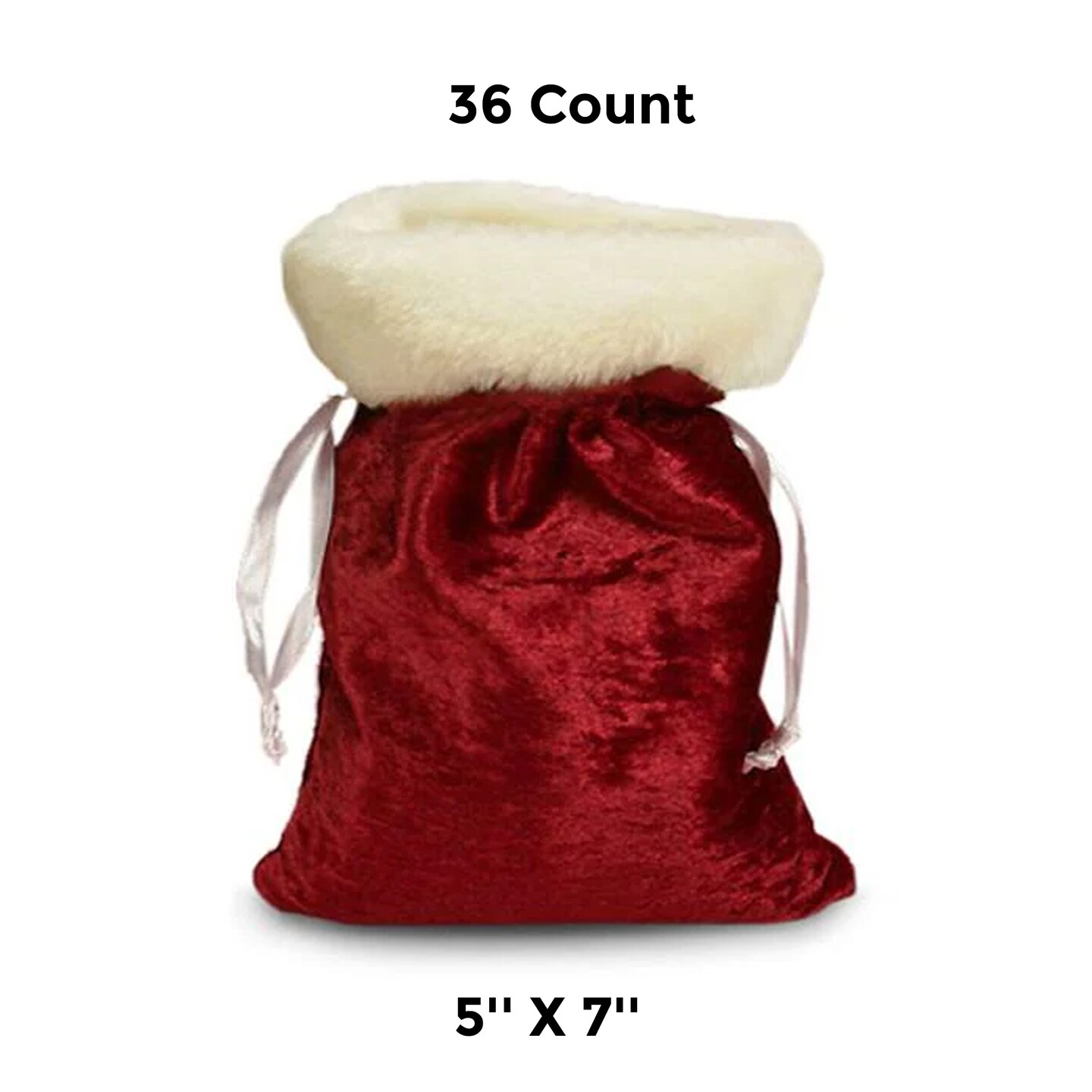 Small Christmas Velvet Bag with Plush Faux Fur 5" x 7"