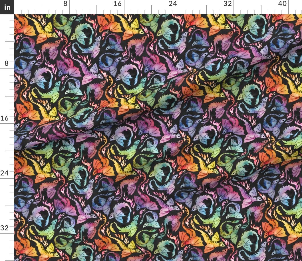 Small Dragons Rainbow Fantasy Watercolor Fairy Tale Mythical Imagination Custom Printed Fabric by Spoonflower Various Fabrics by the Yard or Fat Quarter