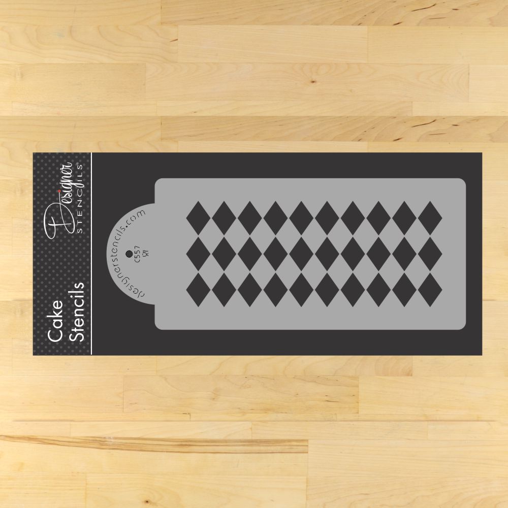 Small Harlequin Cake Stencil Side | C557 by Designer Stencils | Cake Decorating Tools | Baking Stencils for Royal Icing, Airbrush, Dusting Powder | Reusable Plastic Food Grade Stencil for Cakes | Easy to Use & Clean Cake Stencil
