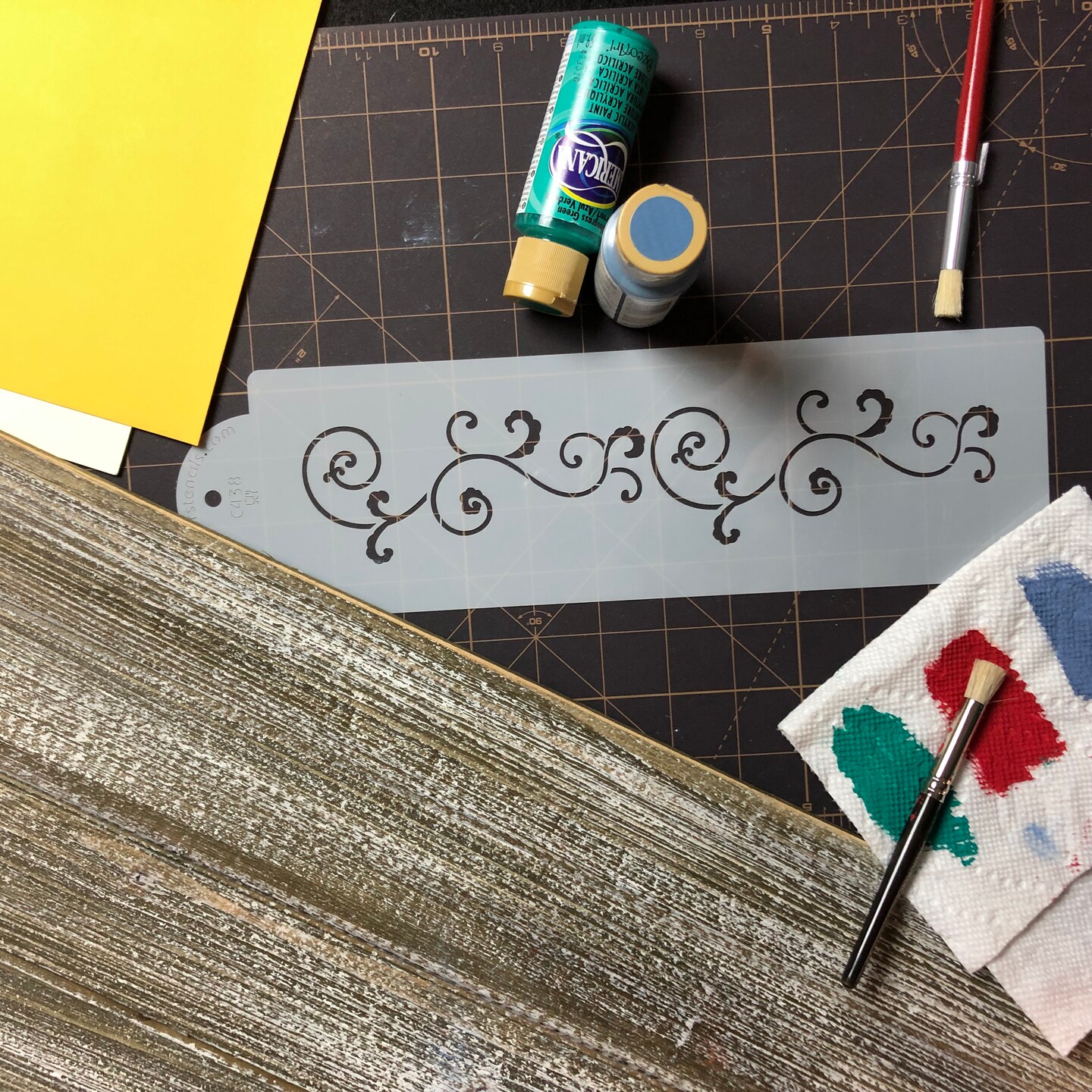 Small Leafy Scroll Cake Stencil Side | C438 by Designer Stencils | Stencils for Royal Icing, Airbrush, Dusting Powder |