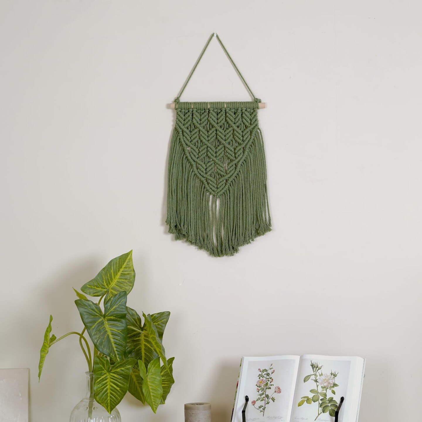 Small Macramé Wall Hanging – Boho Green Tapestry, Cute Aesthetic Wall Art for Bedroom, Living Room, Dorm, Nursery, or Office, 16" x 10", Perfect for Teen Girls and Small Spaces