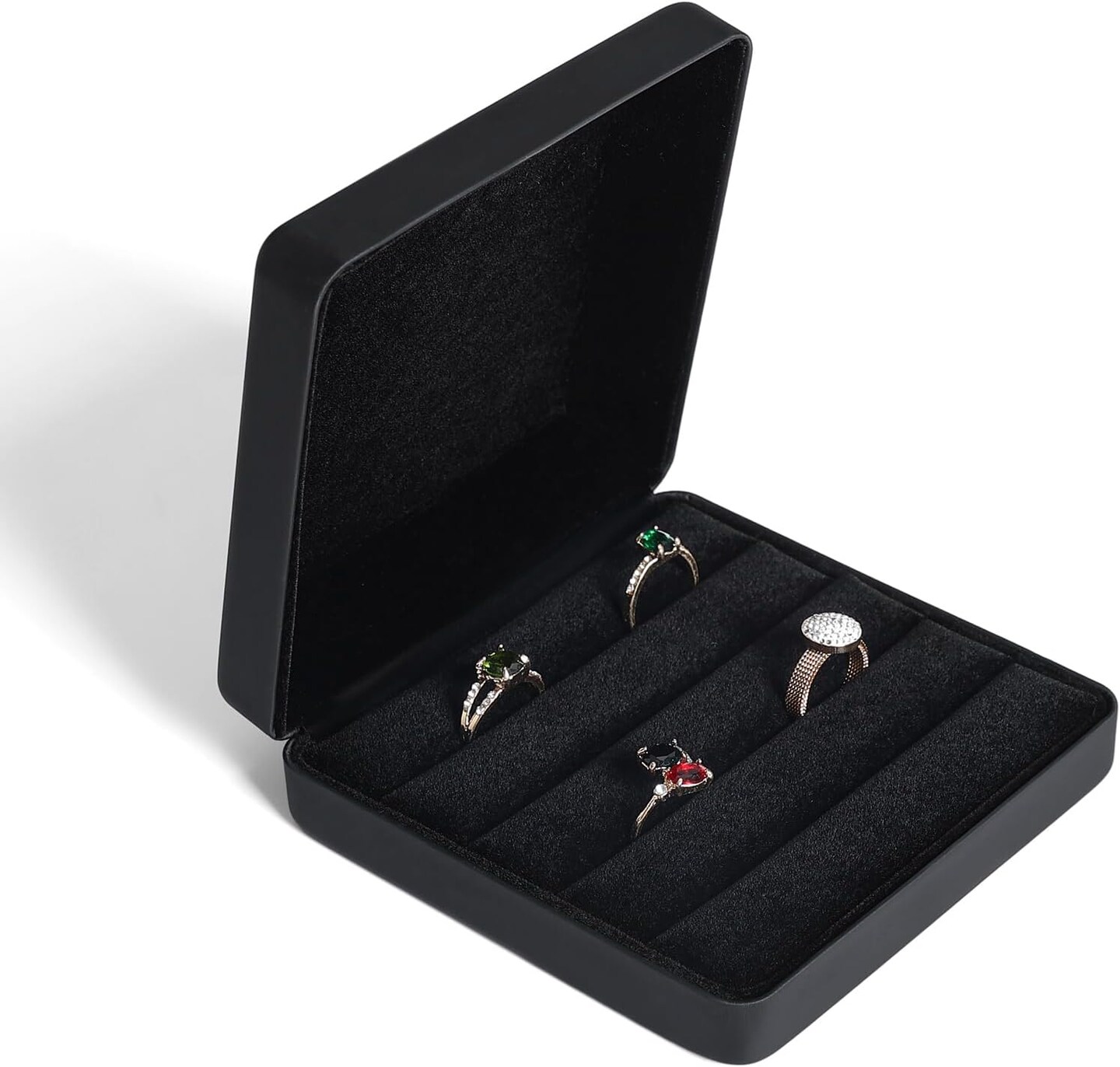 Small Ring Organizer Box, Portable Jewelry Rings Display Collector Case, Jewelry Ring Tray holder Showcase. Modern Ring Storage Boxes Fit for Women, Girl for Travel (Black)