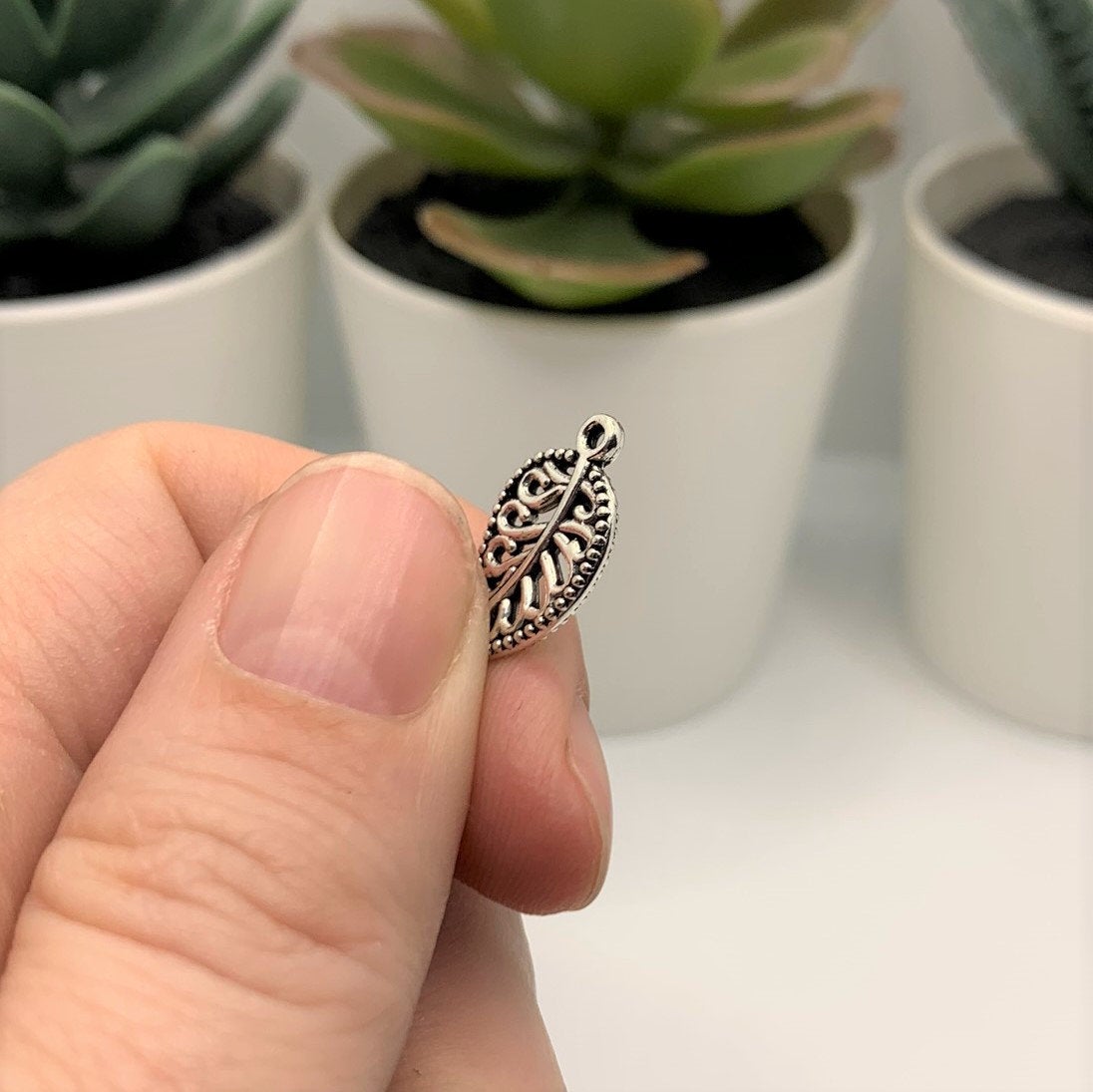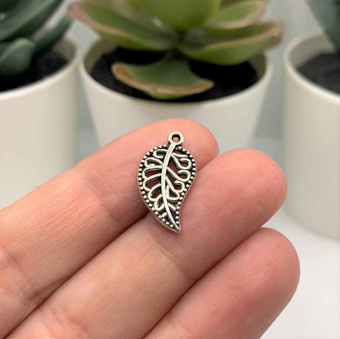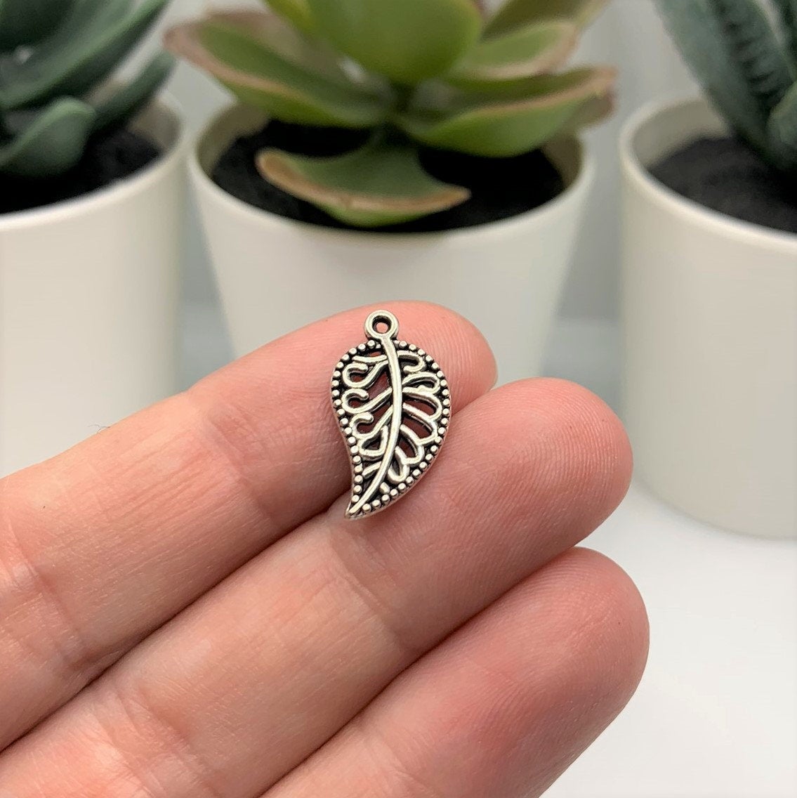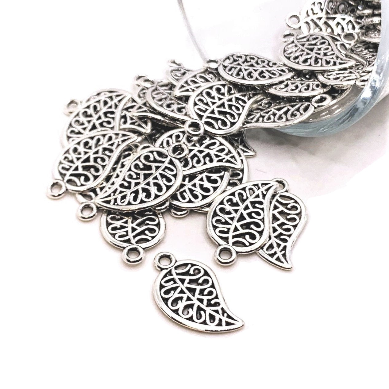 Small Scrolled Silver Leaf Charms, 18x10mm
