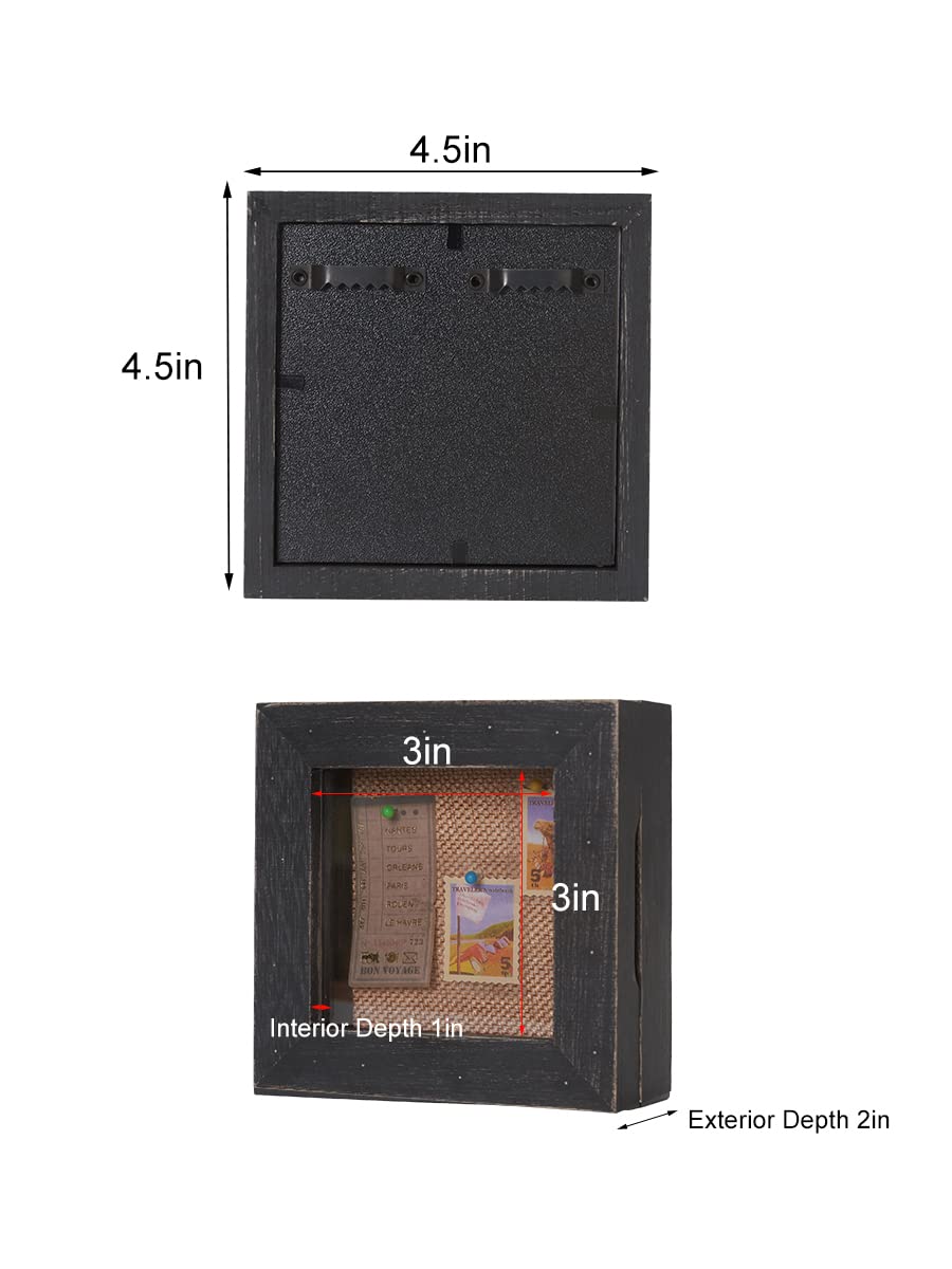 Small Shadow Box 3x3, Tiny Shadow Boxes Display Cases with Door, Mini Shadow Box Frame with Lid for Shells Taxidermy Keepsake Photos Tickets Coins-Weathered Black