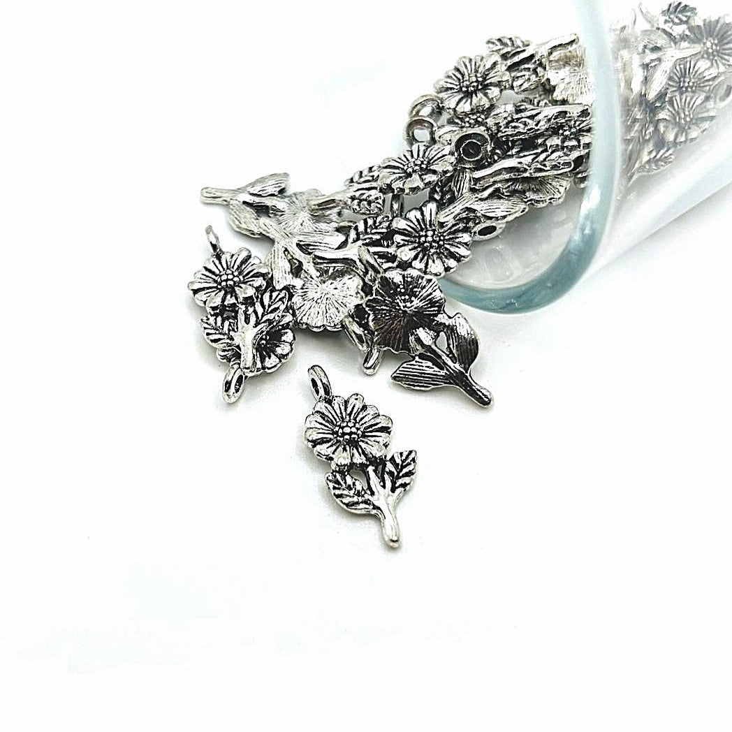 Small Silver Chrysanthemum Flower Charms, 21x10mm