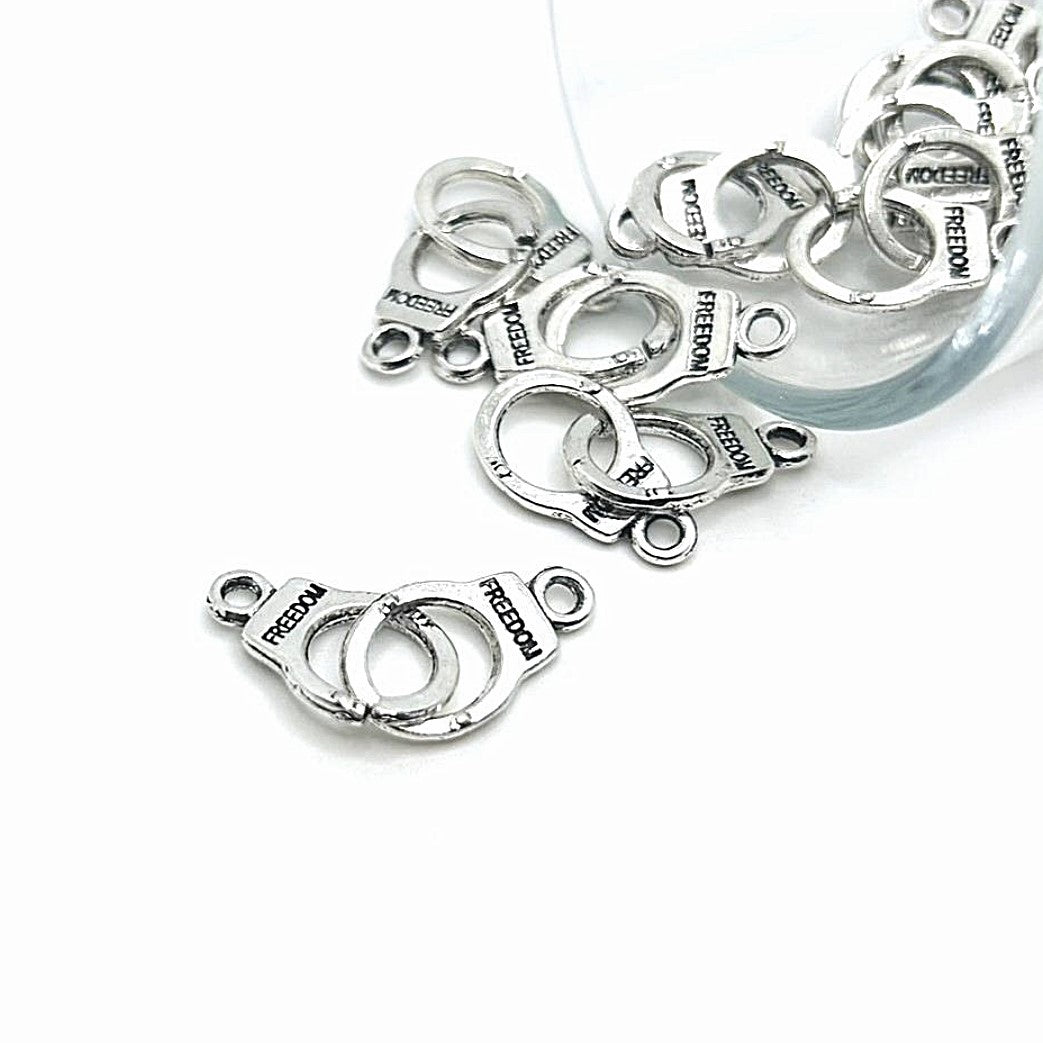 Small Silver Freedom Handcuff Charms, 30x10mm