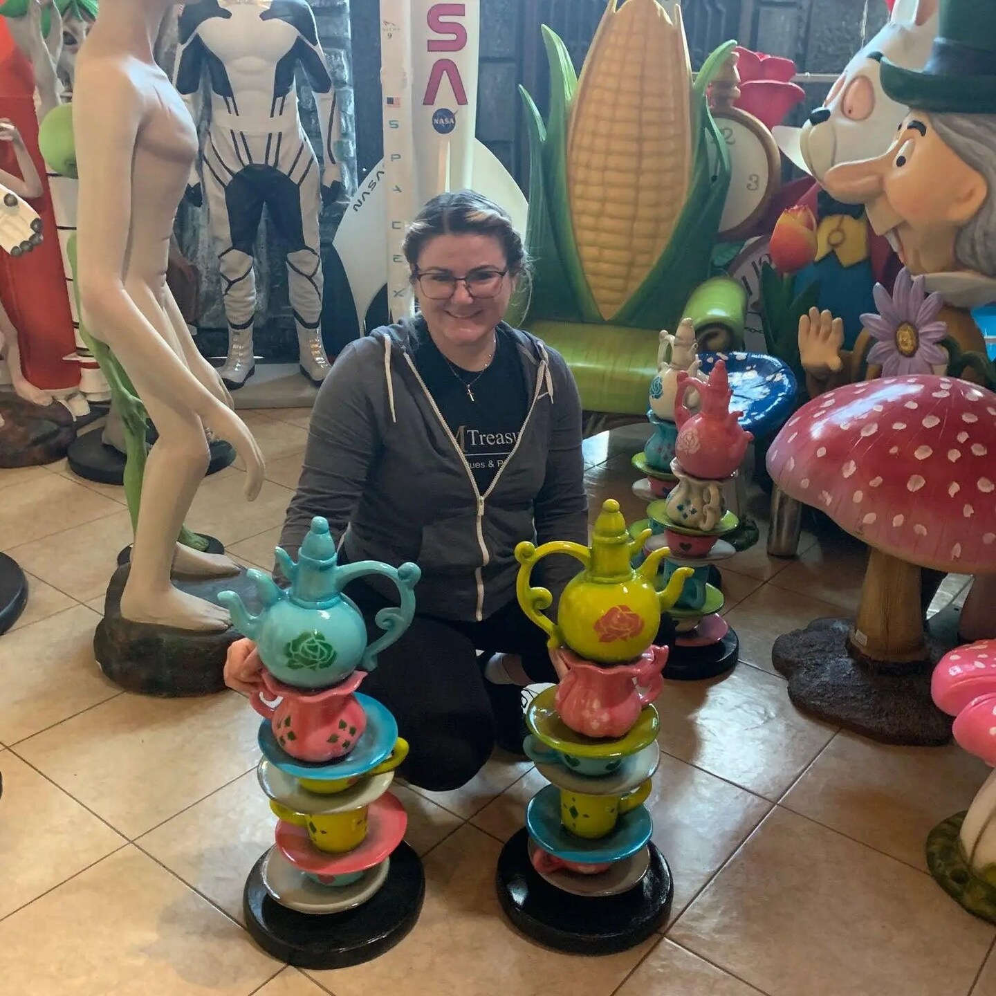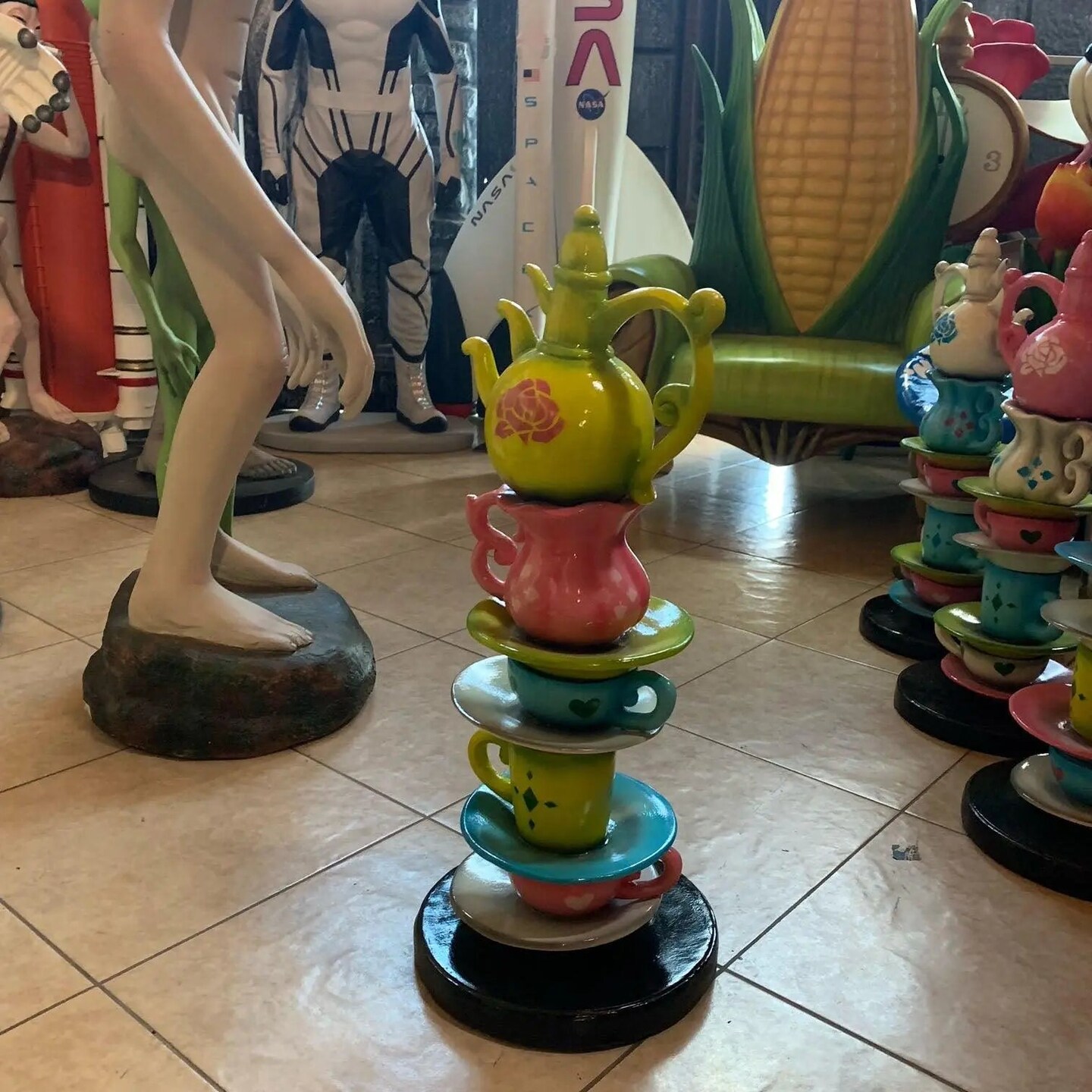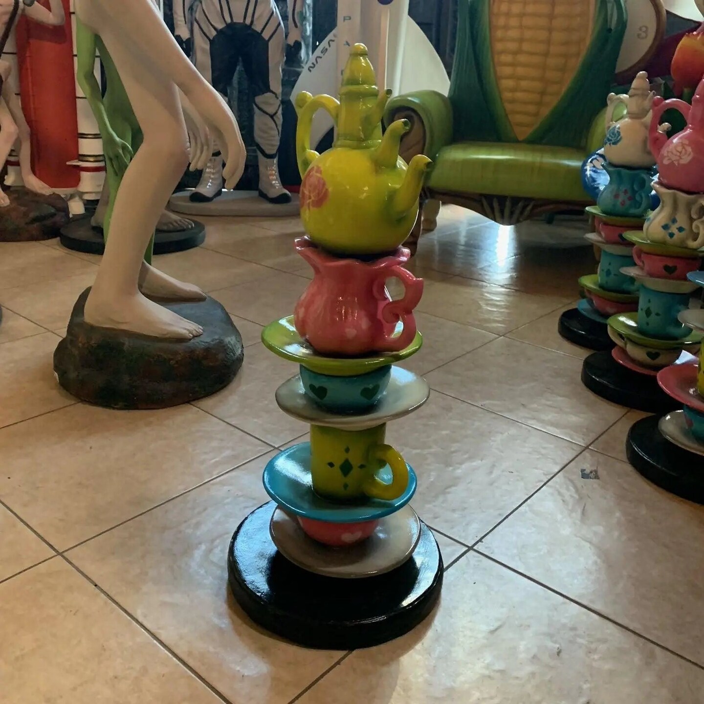 Small Stacked Green Teapot Table Top Statue