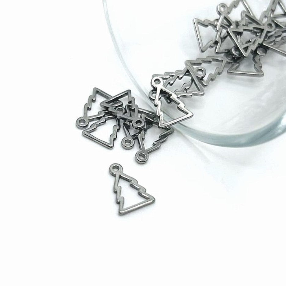 Small Stainless Steel Christmas Tree Charms, 8x11mm