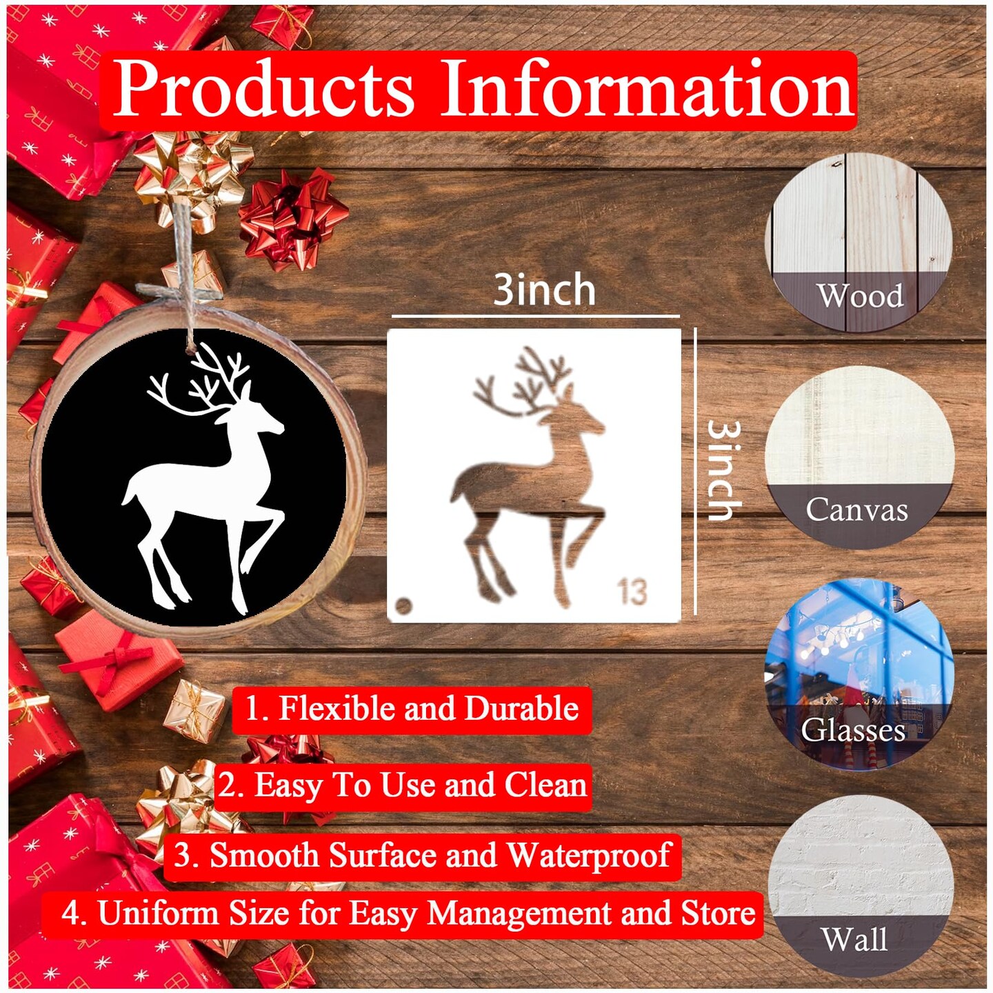 Small Stencils for Painting on Wood Reusable, 3 Inch Reusable Stencil for Craft Ornament Paint Template Stencils for Wall Card Rock Wood Signs Coasters Canvas Home Decor (Christmas)