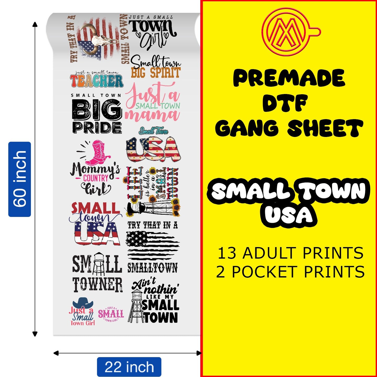 Small Town USA Direct-to-Film Transfer Gang Sheets - 22x60