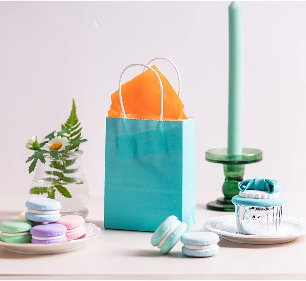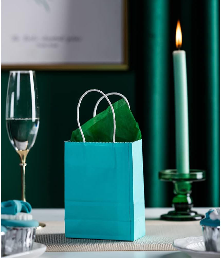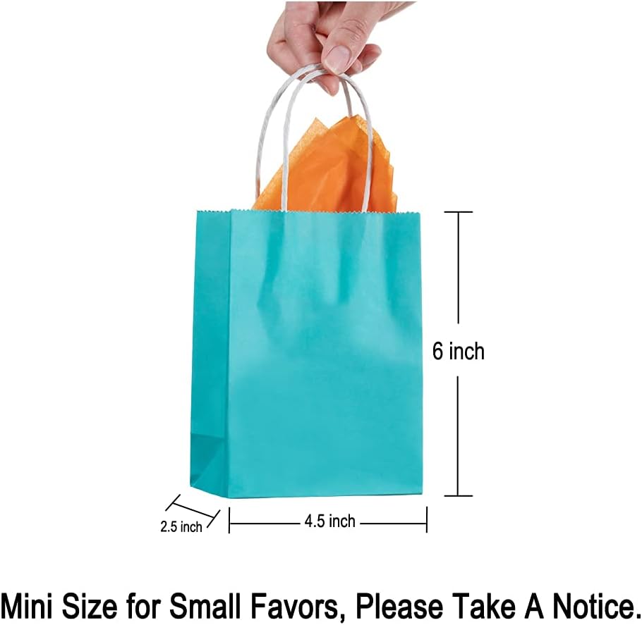 Small Turquoise Blue Paper Bag with Handle Party Favours Bag 6x4.5x2.5 inch for Baby Shower Birthday Wedding Recycled Bag, Pack of 24