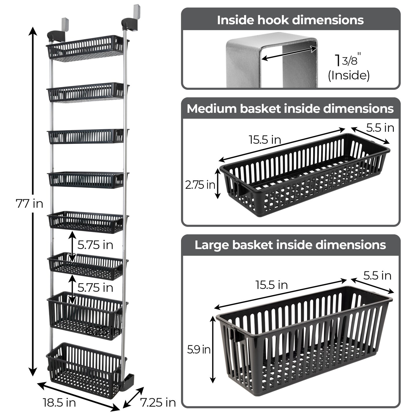 Smart Design 8-Tier Over-The-Door Hanging Pantry Organizer Black