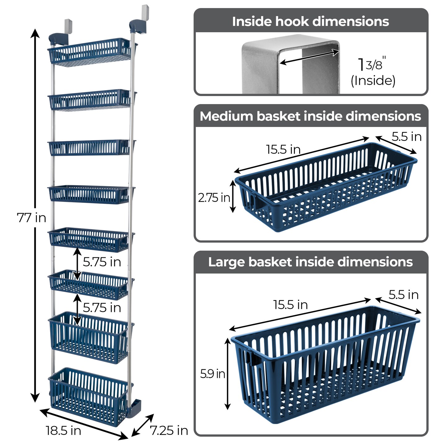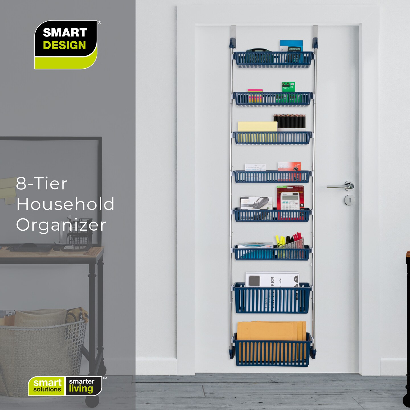 Smart Design 8-Tier Over-The-Door Hanging Pantry Organizer - Navy