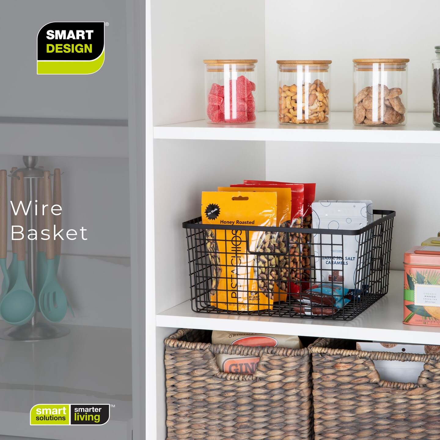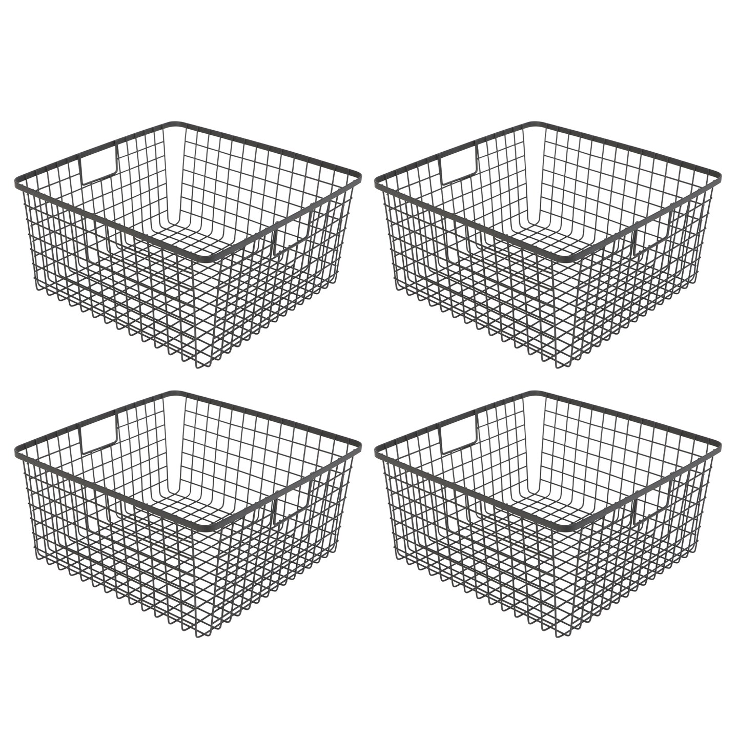 Smart Design Nestable Basket Organizer with Handles - Steel - 12 x 12 x 6 - Black - Set of 4