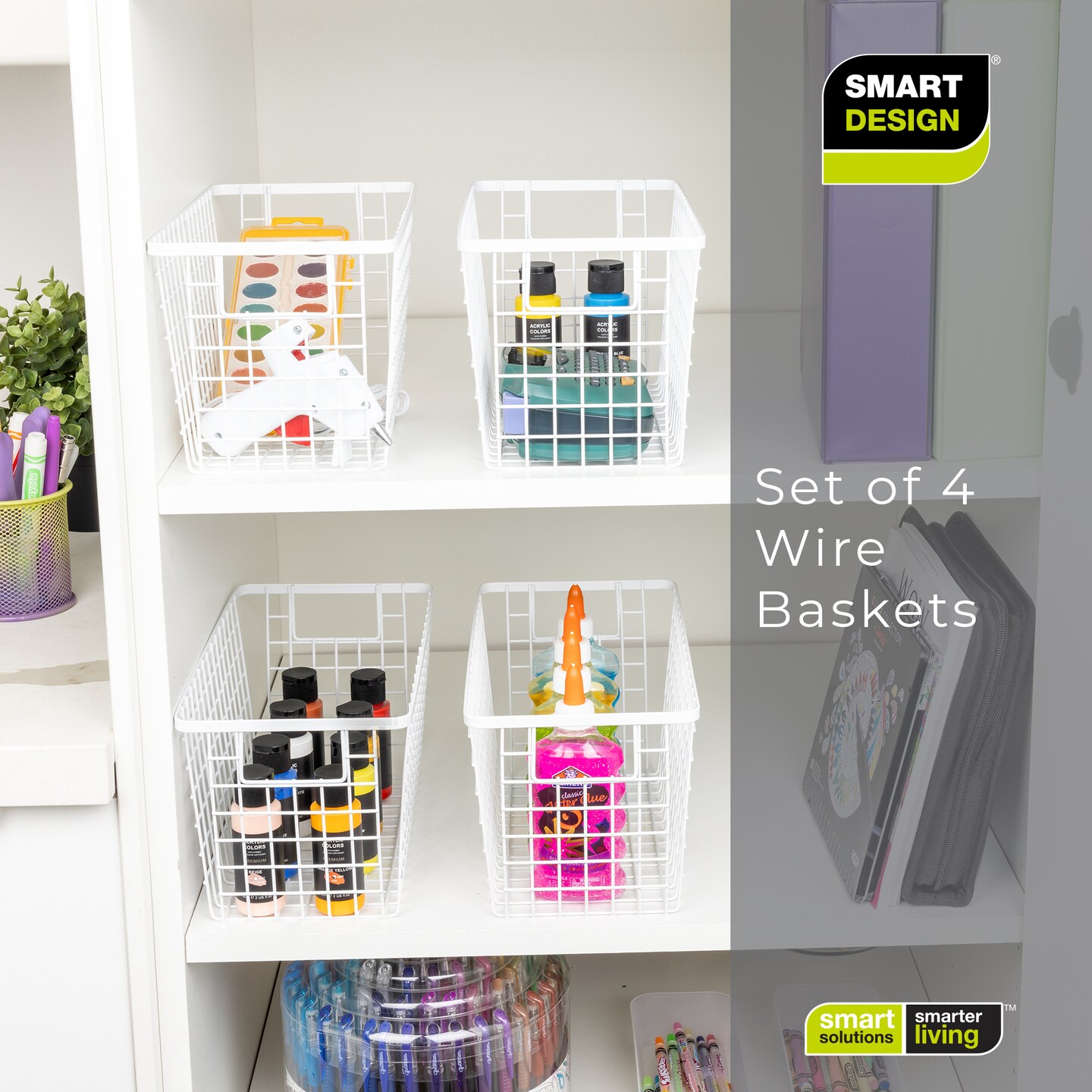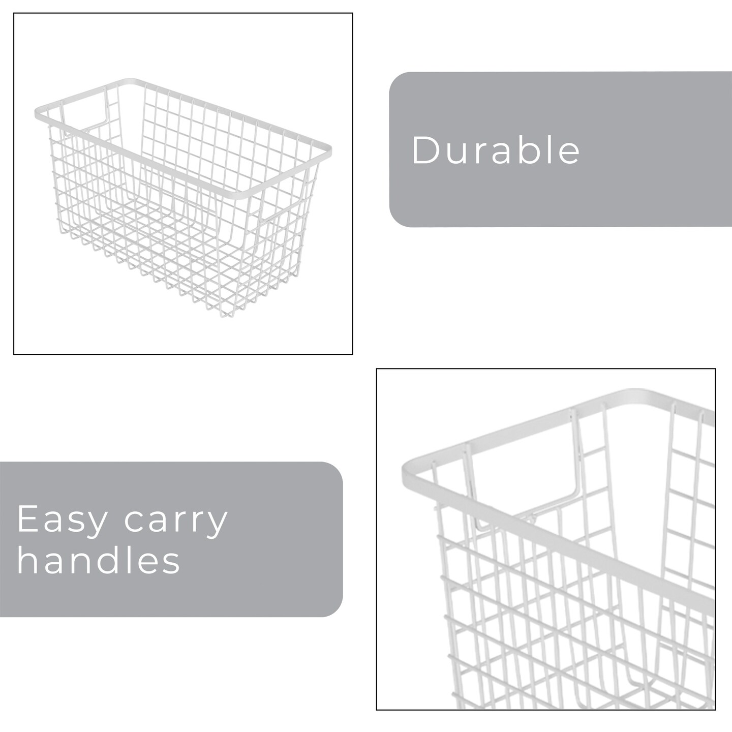 Smart Design Nestable Basket Organizer with Handles - Steel - 6 x 12 x 6 - White - Set of 4