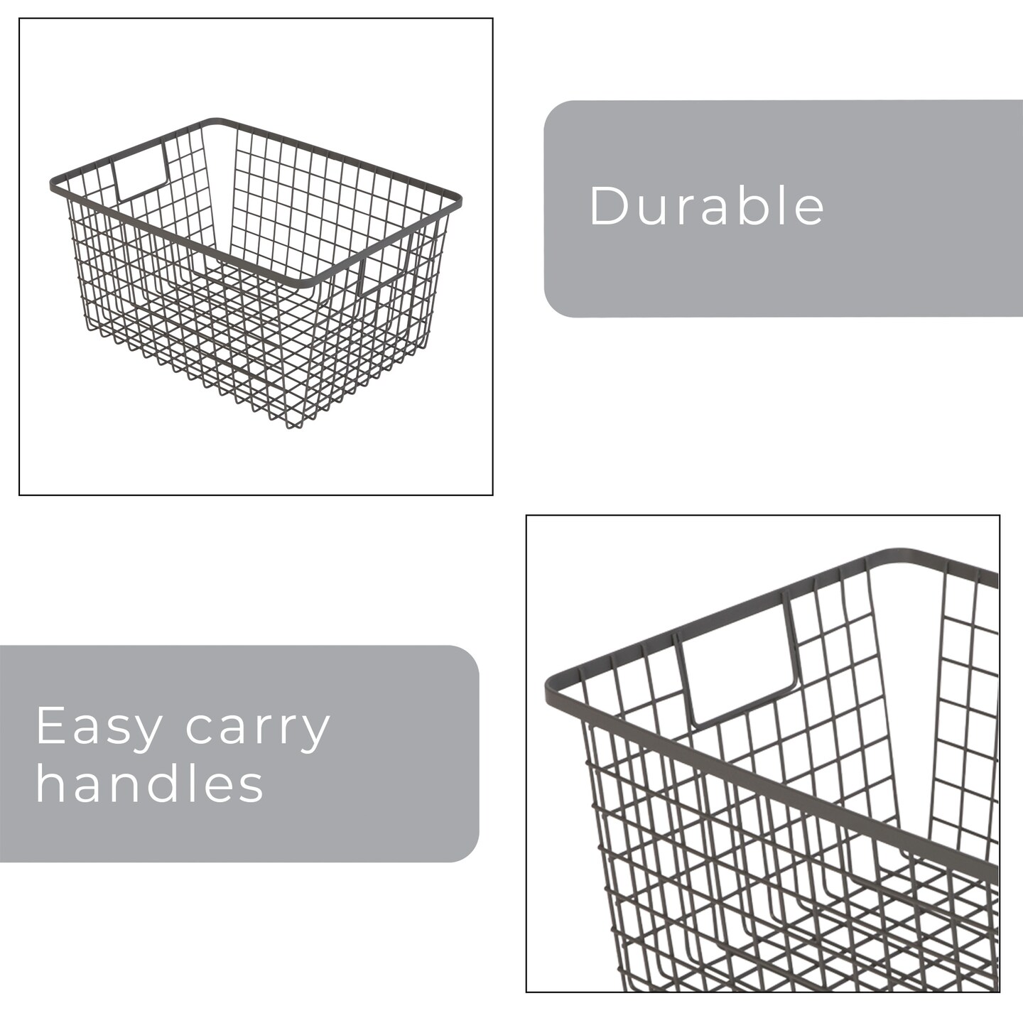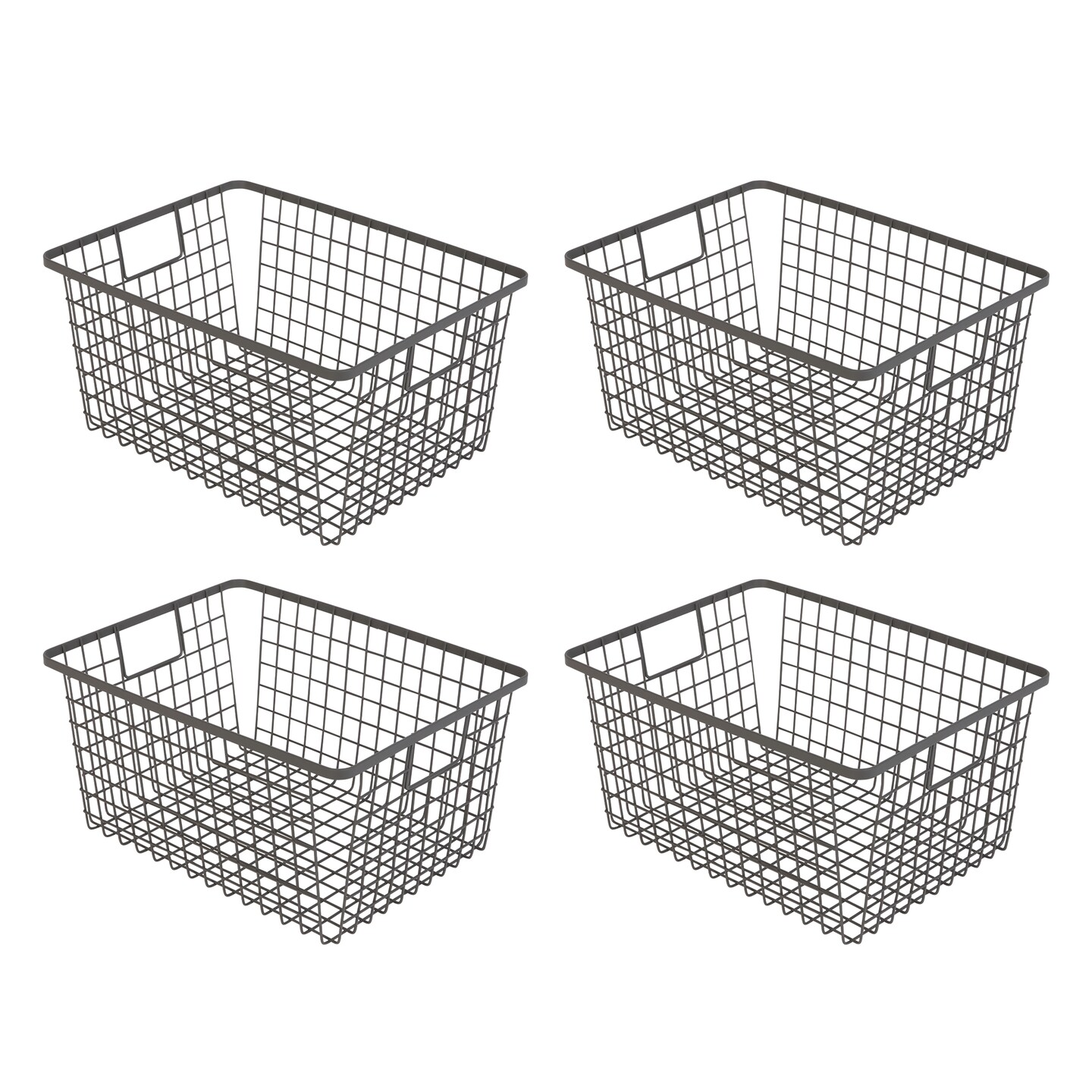 Smart Design Nestable Basket Organizer with Handles - Steel - 9 x 12 x 6 - Gunmetal - Set of 4