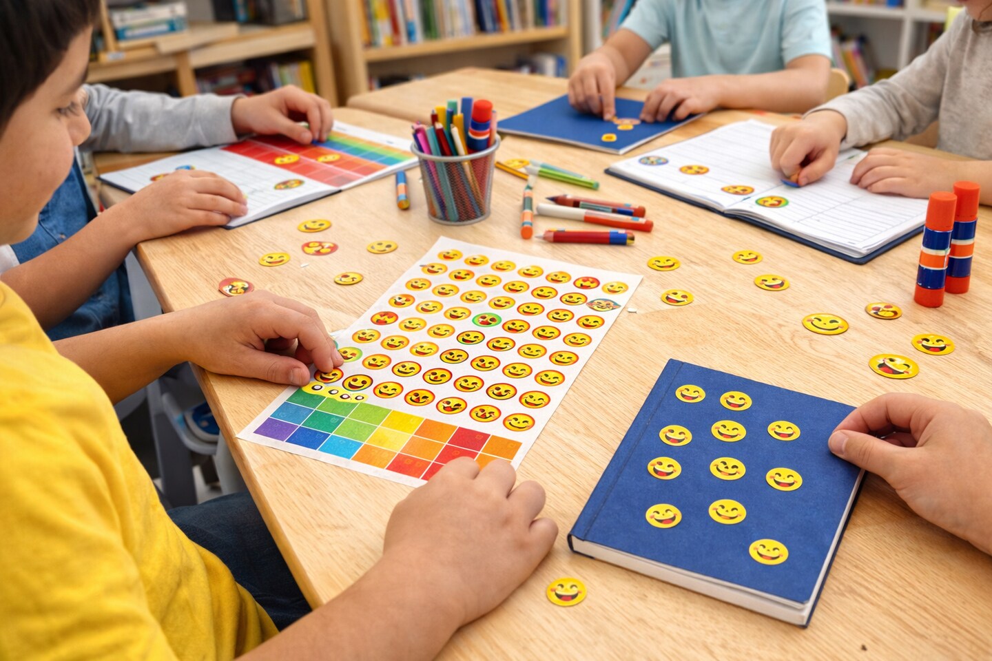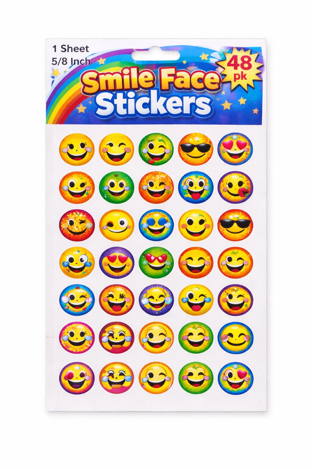 Smile Face Sticker Sheets 5/8 Inch – 48 Pack Reward Stickers, 4 Sheets for Classrooms & Crafts