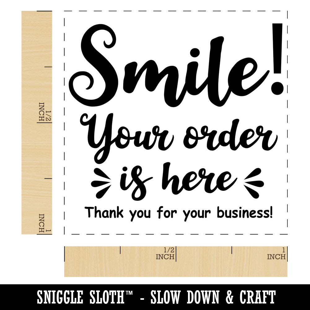 Smile Your Order is Here Cute for Businesses Self-Inking Rubber Stamp Ink Stamper