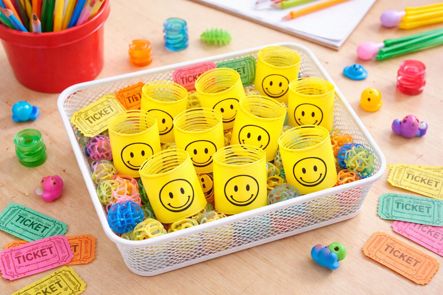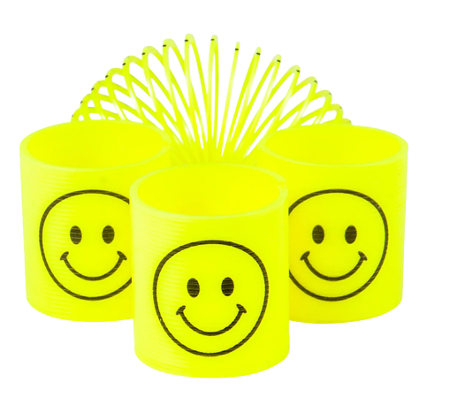 Smiley Face Plastic Coil Springs, Yellow, Fidget Toys & Classroom Rewards, 12 Pack, 1.4"