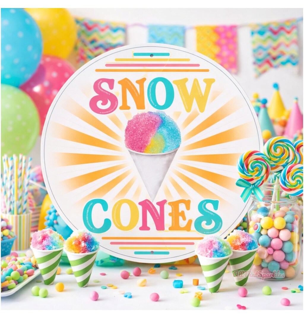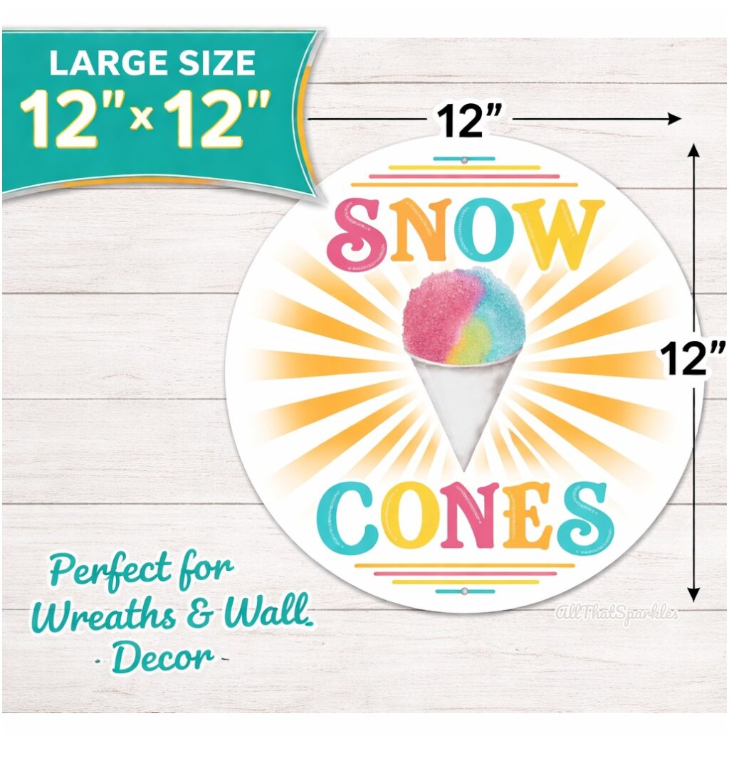 Snow Cone Metal Wall Sign, 12" Inch Round for Wall Decorations or Wreath Accent Centerpiece