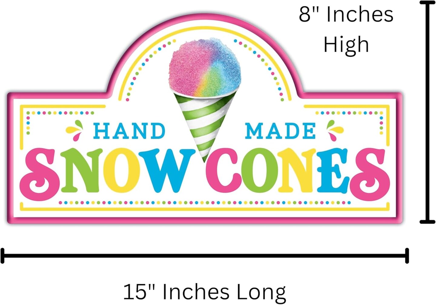 Snow Cones Street Sign, 15"L x 8"H, Embossed Metal For Summer Wreath Attachments, Crafts, and Decorations (White, Pink, Lime Green, Multi)